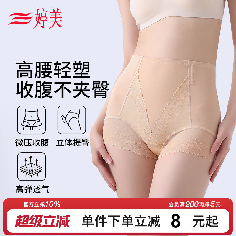 婷美新款高腰收腹无痕内裤透气防走光收小肚子美体提臀薄款塑身裤