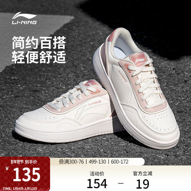 李宁小白鞋 |板鞋女鞋休闲鞋秋季轻便软底舒适百搭鞋子增高运动鞋