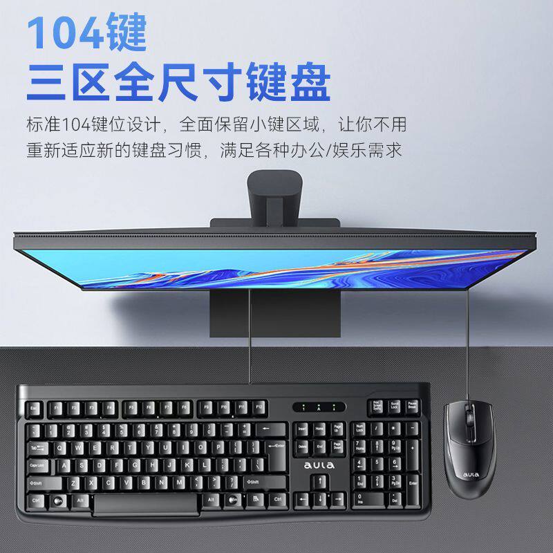 【国补】AULA/狼蛛AC100商务办公有线键鼠套装电脑台式键盘鼠标