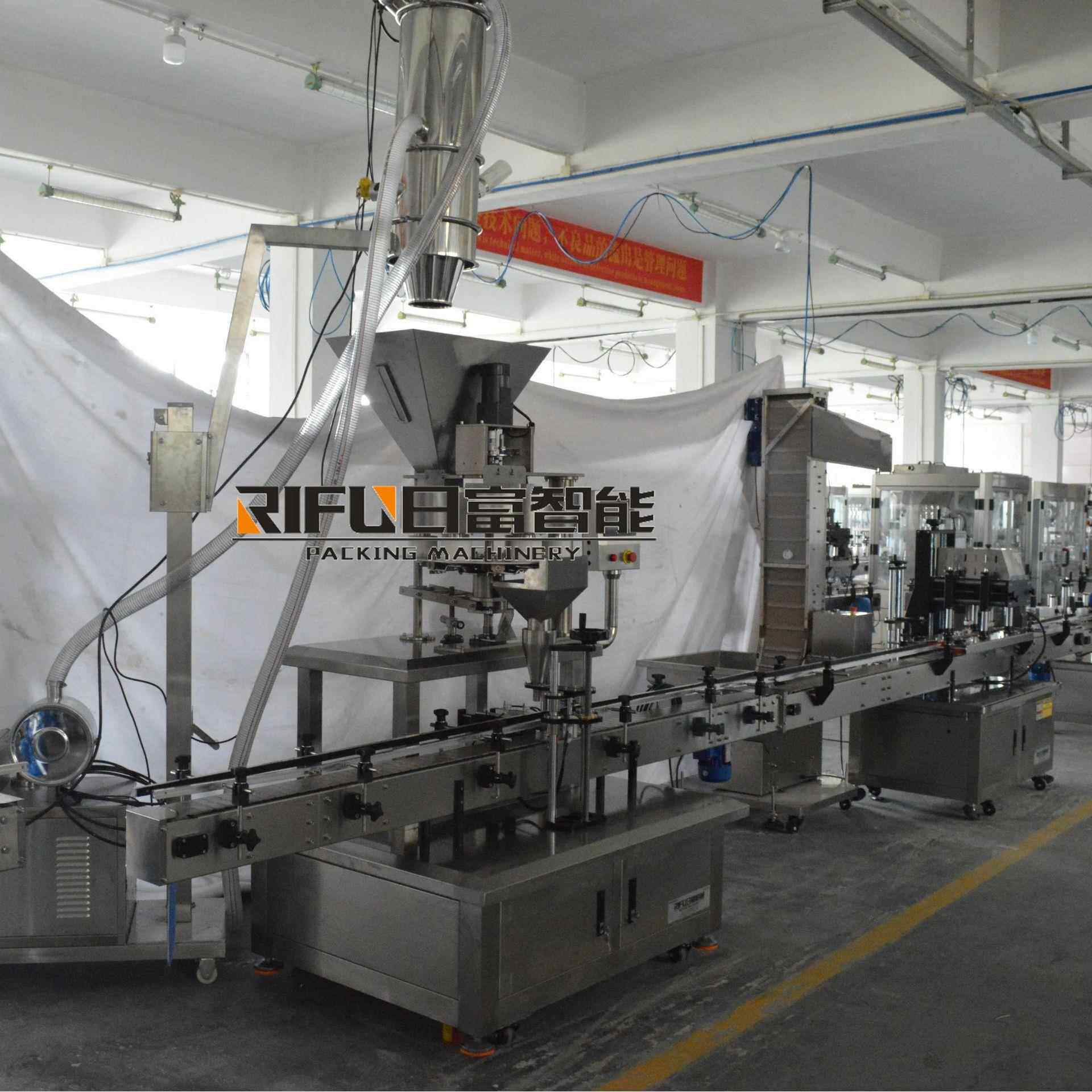 自动量杯式颗粒灌装机 塑料颗粒自动灌装生产线 四轮旋盖设备