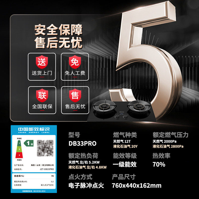 海信燃气灶煤气灶家用厨房双灶台嵌入式天然气炉灶具官方DB33Pro