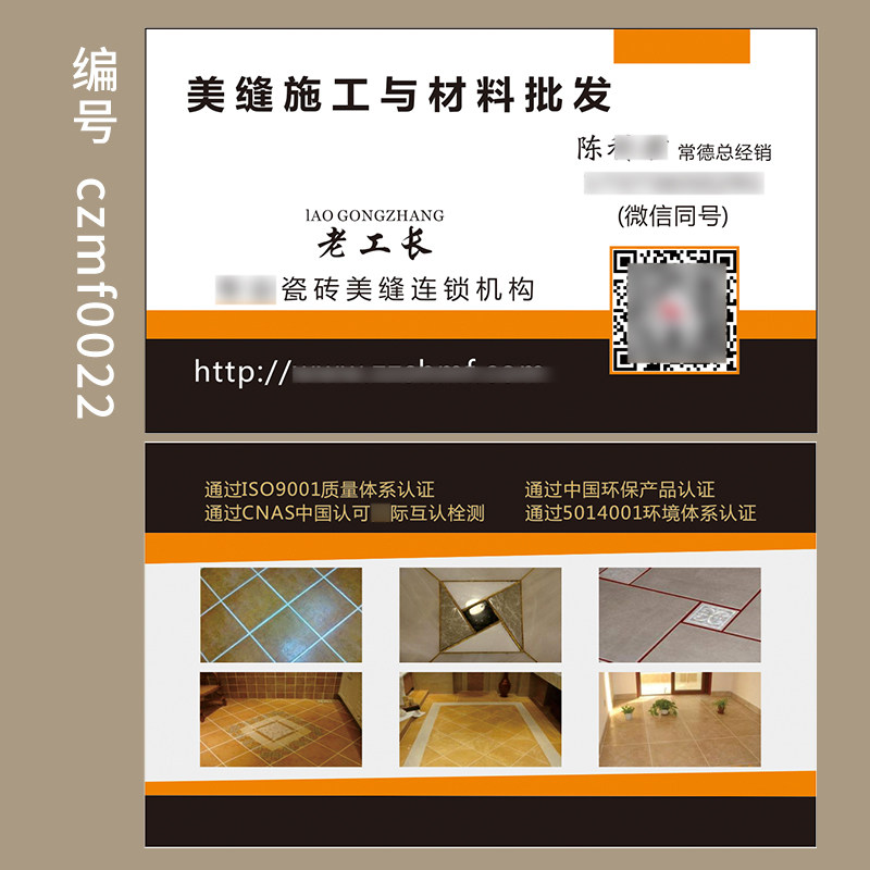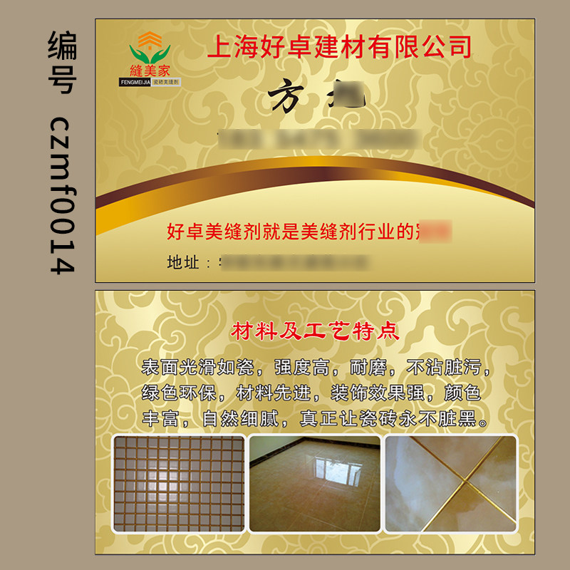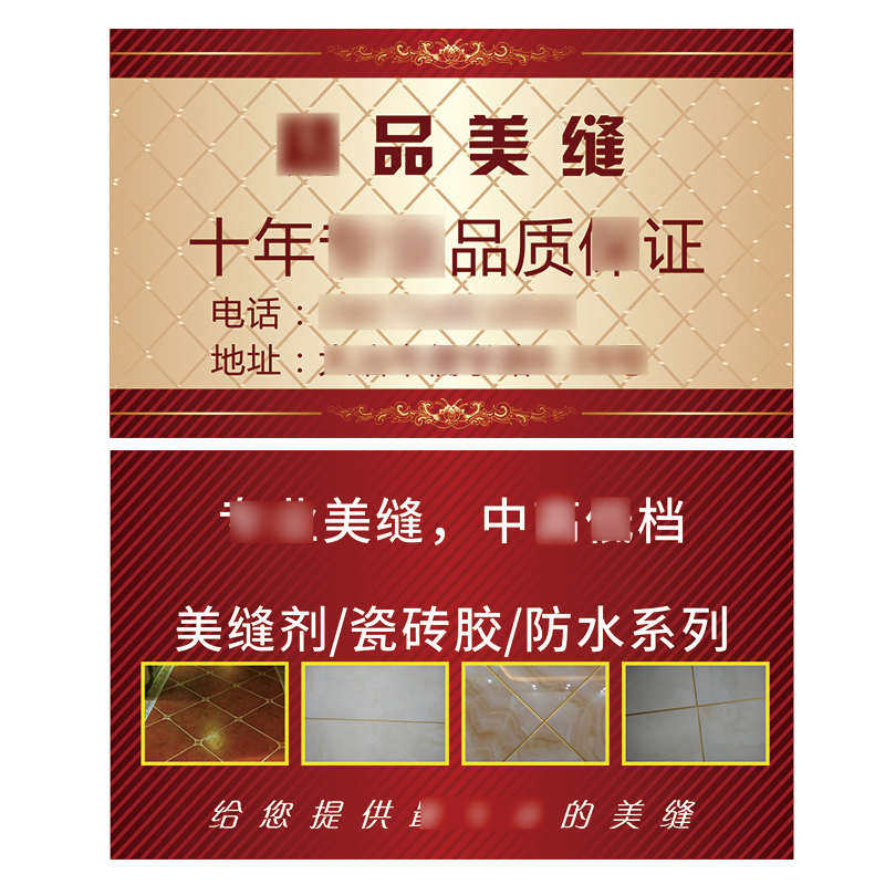 瓷砖美缝名片制作双面免费设计高档加厚透明磨砂PVC防水补漏装修