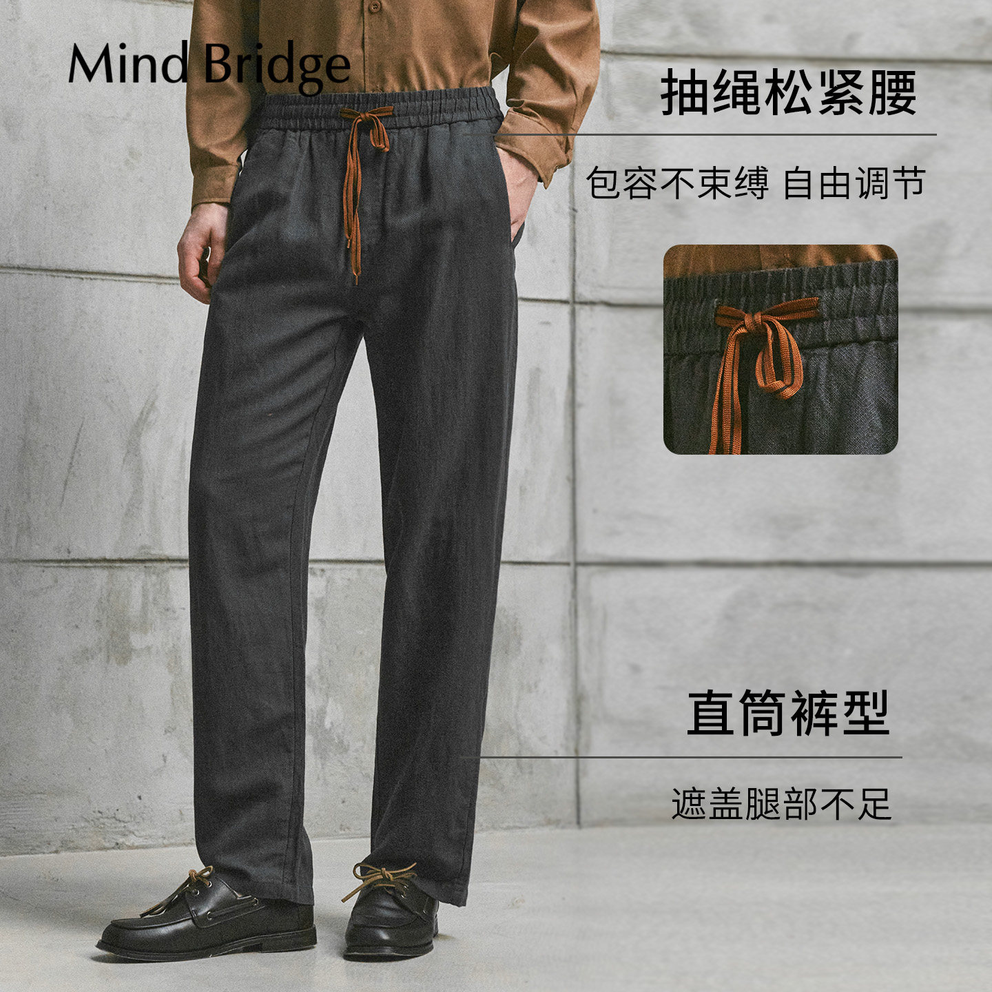 Mind Bridge【棉麻】男士意式休闲长裤2026年春季老钱宽松直筒裤