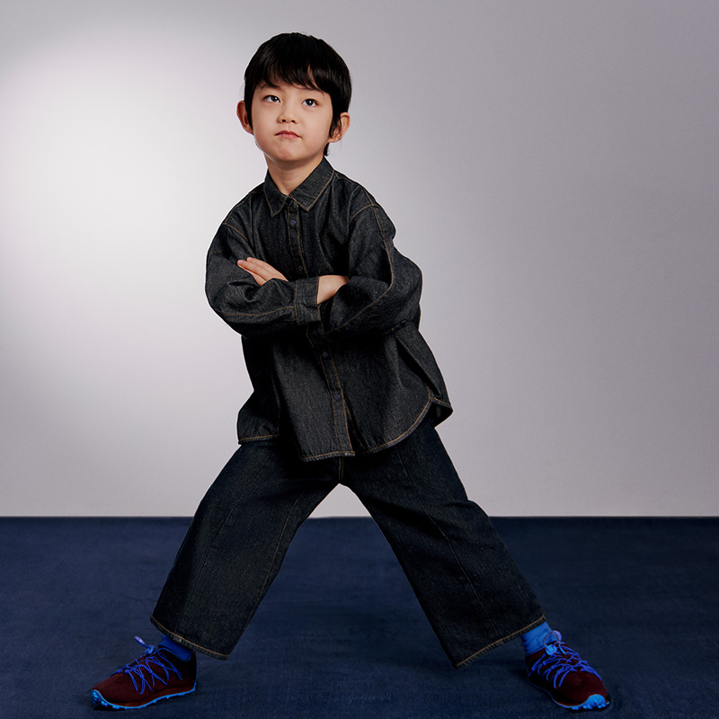 江南布衣童装衬衣时尚衬衫领纯色牛仔春男女童儿童jnbybyjnby
