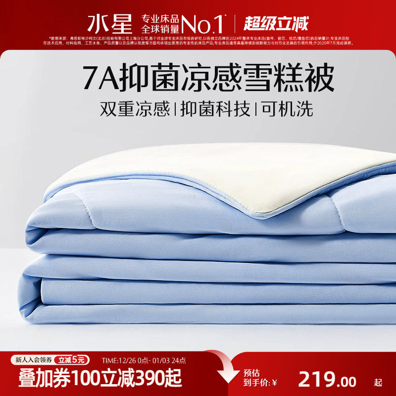 水星家纺第4代被A类抗菌雪糕夏被子可水洗夏凉被学生宿舍空调被