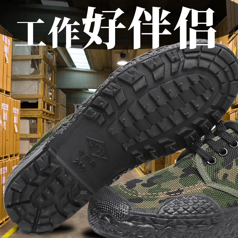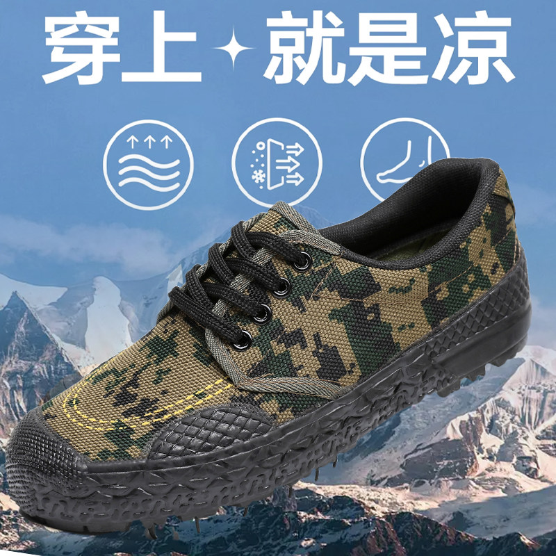 军绿迷彩小花低帮解放鞋户外休闲帆布鞋防滑耐磨登山黄胶鞋干活鞋