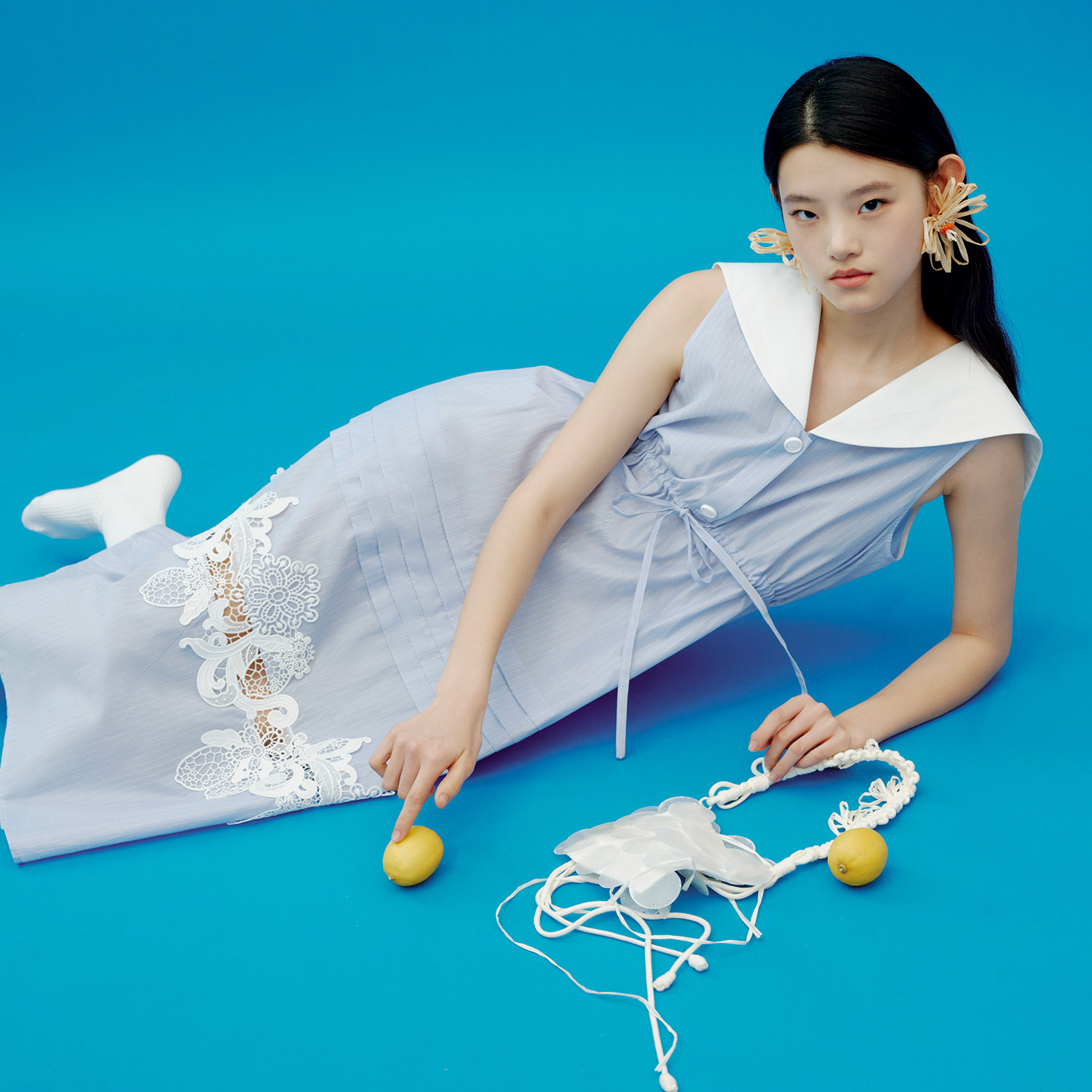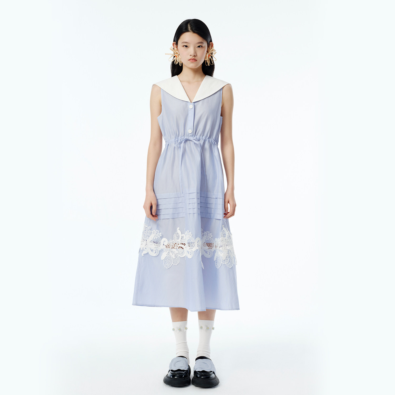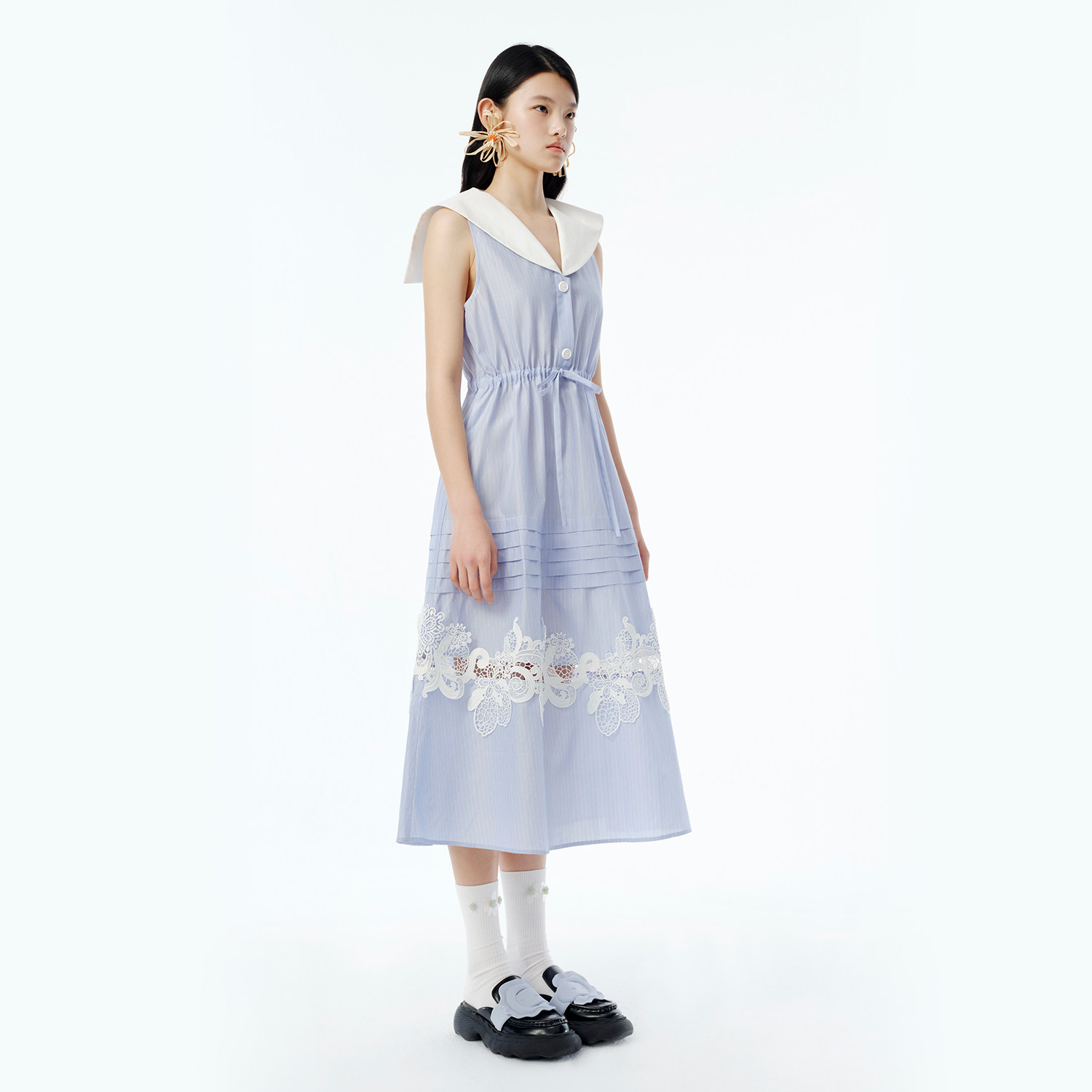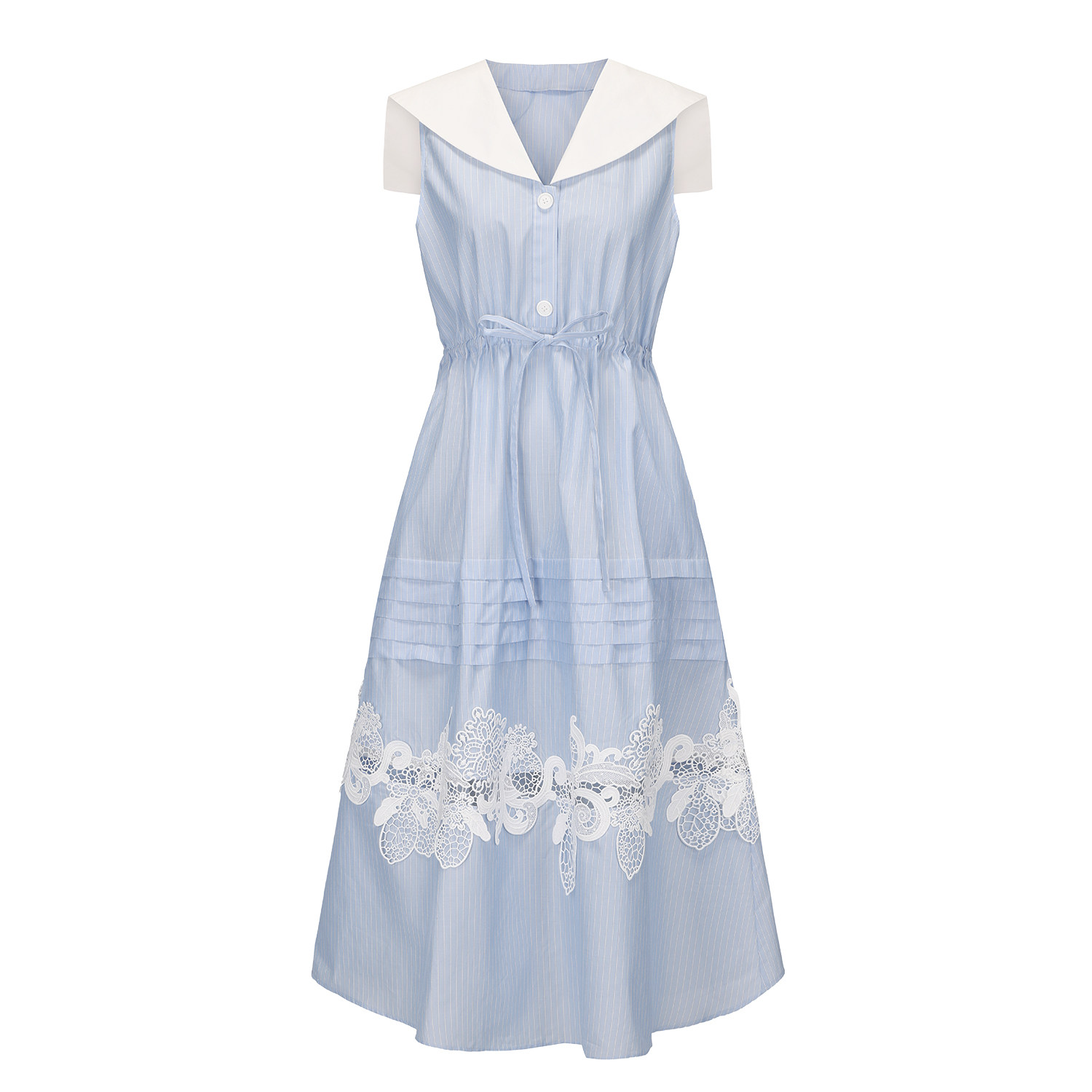 XIAOLI筱李 春夏胶囊系列新品航海系蓝白条纹海军领无袖连衣裙