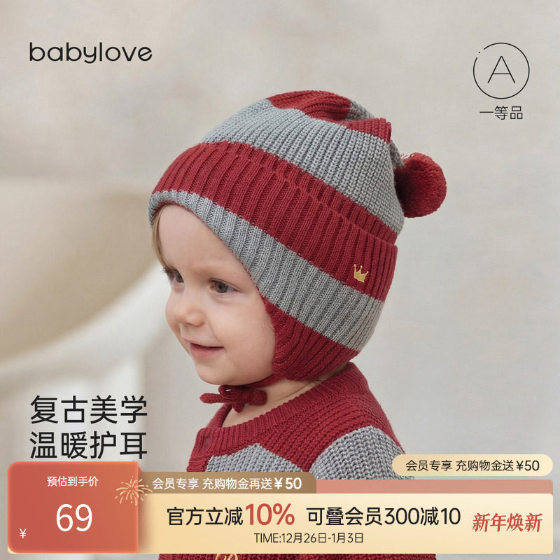 babylove婴儿毛线帽秋冬针织护耳帽宝宝外出保暖防风帽子包头帽