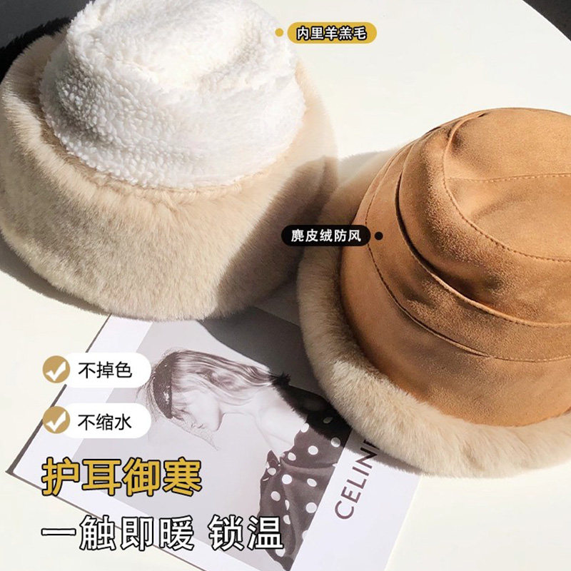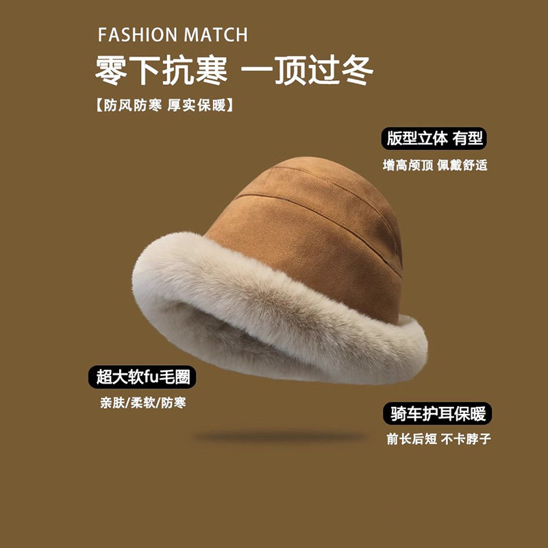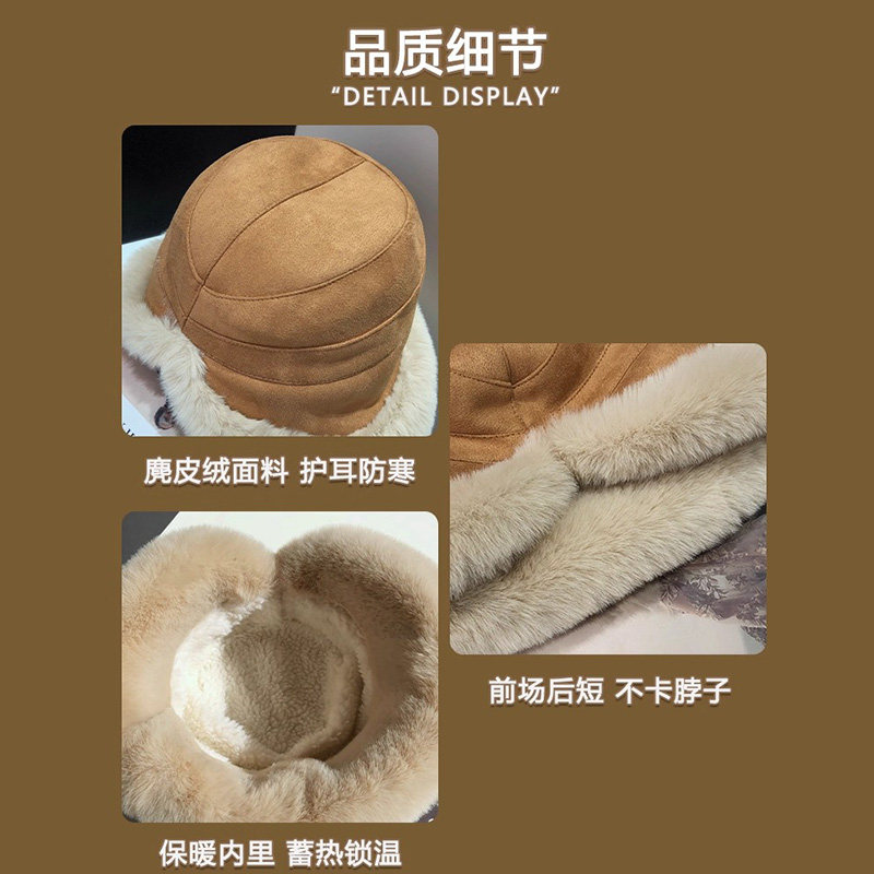 帽子女冬季新款加绒渔夫帽保暖棉帽护耳雷锋帽女秋冬毛绒盆帽防寒