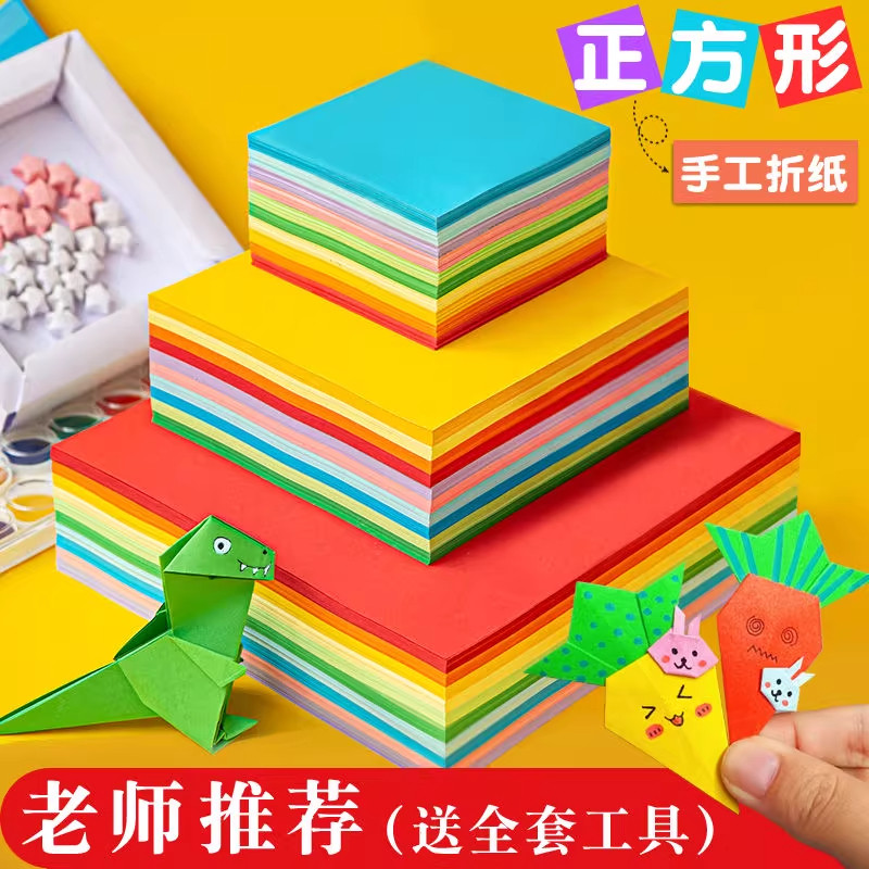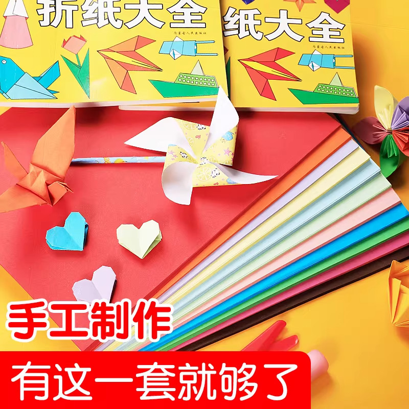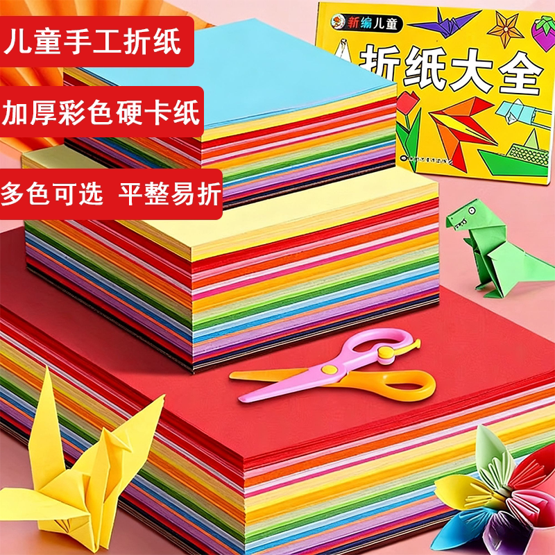 折纸彩纸儿童手工diy纸彩色卡纸幼儿园小学生剪纸窗花美术画画软厚千纸鹤制作材料包大全趣味益智双面立体
