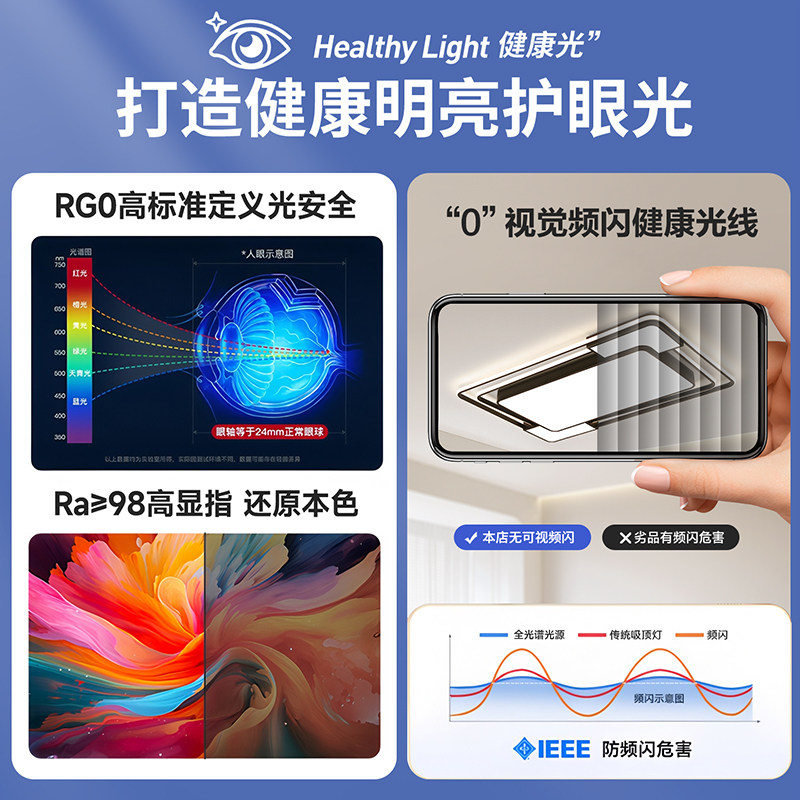 wow上下双光源卧室吸顶灯全光谱护眼高亮智能母婴护眼书房吸顶灯