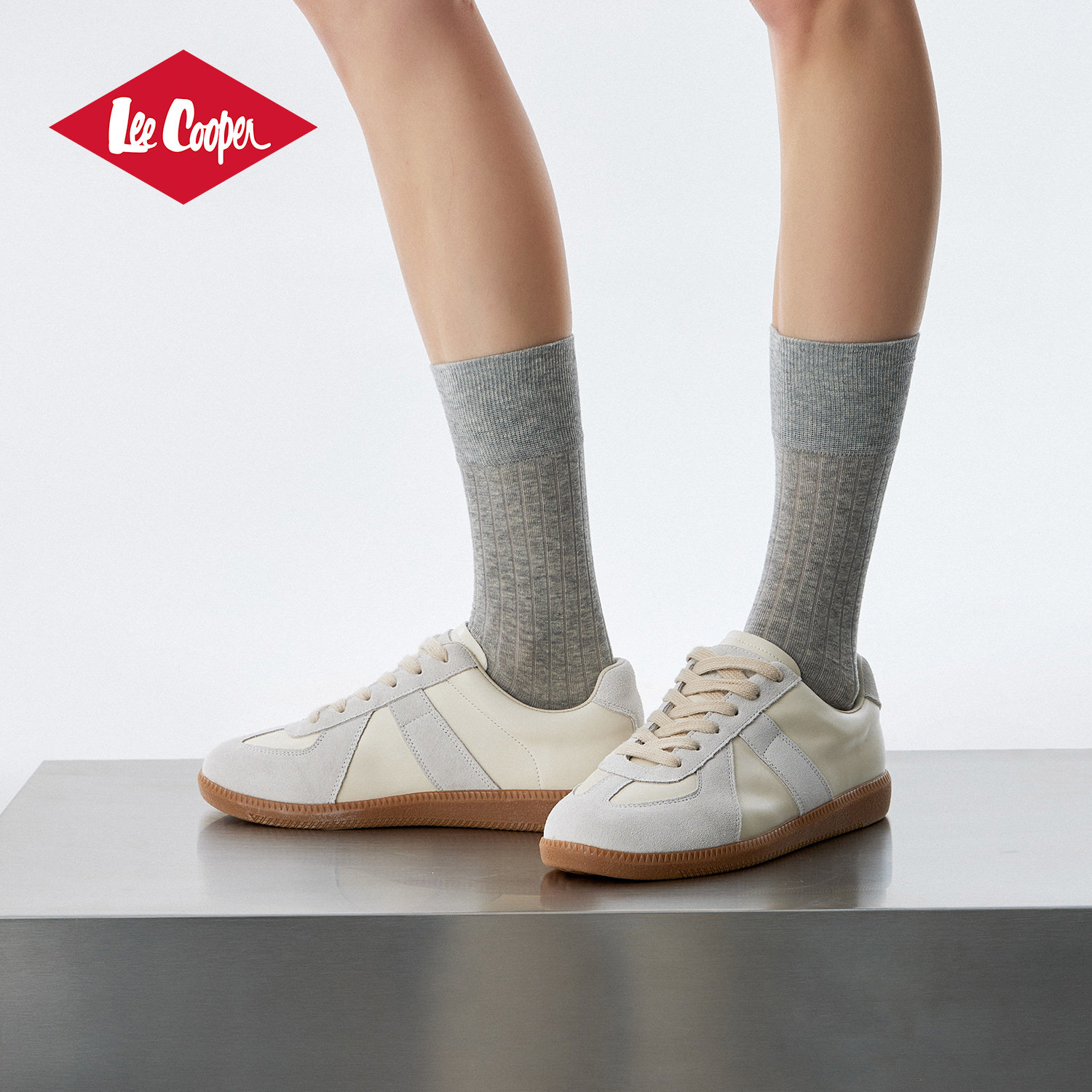 Lee Cooper休闲板鞋女2026新款春季皮面低帮平底德训鞋潮流阿甘鞋