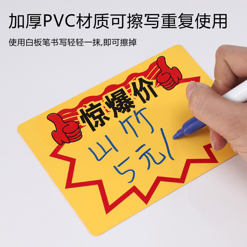 超市商品可擦写价格展示牌水果蔬菜服装店价格标签标价牌 生鲜特价促销POP广告夹惊爆价店长推荐爆炸贴价签牌