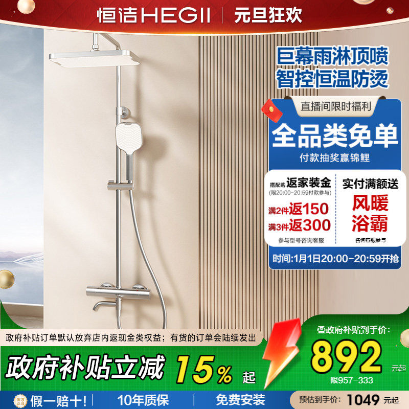 【新品】恒洁恒温淋浴花洒套装家用明装卫浴室龙头加大顶喷957