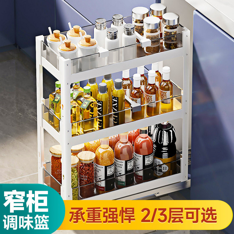 帝米尼调味篮调料拉篮厨房橱柜极窄柜抽屉式抽拉式收纳置物柜体