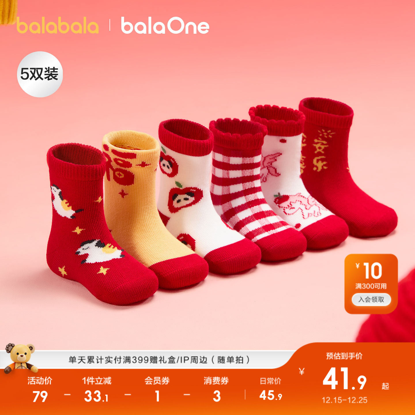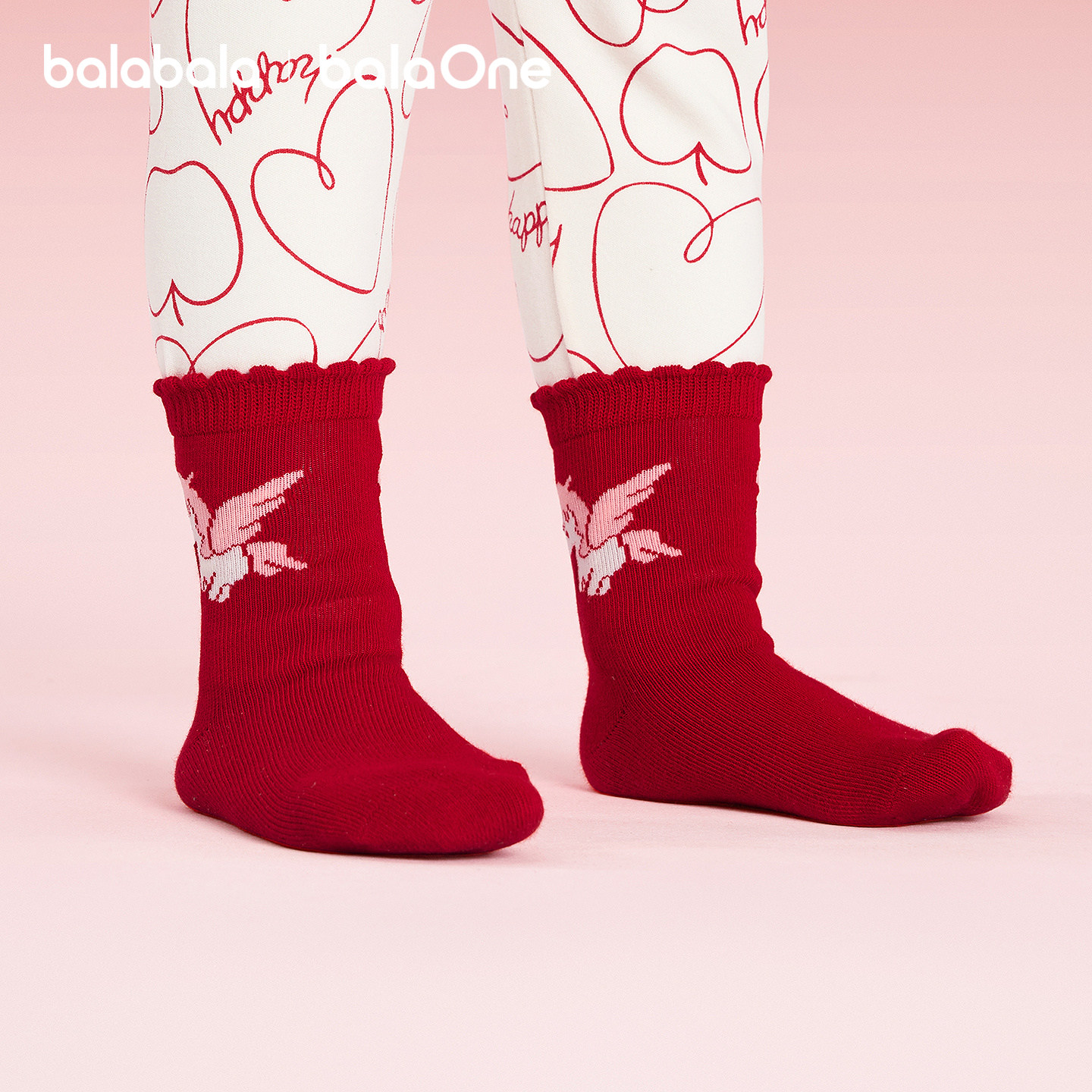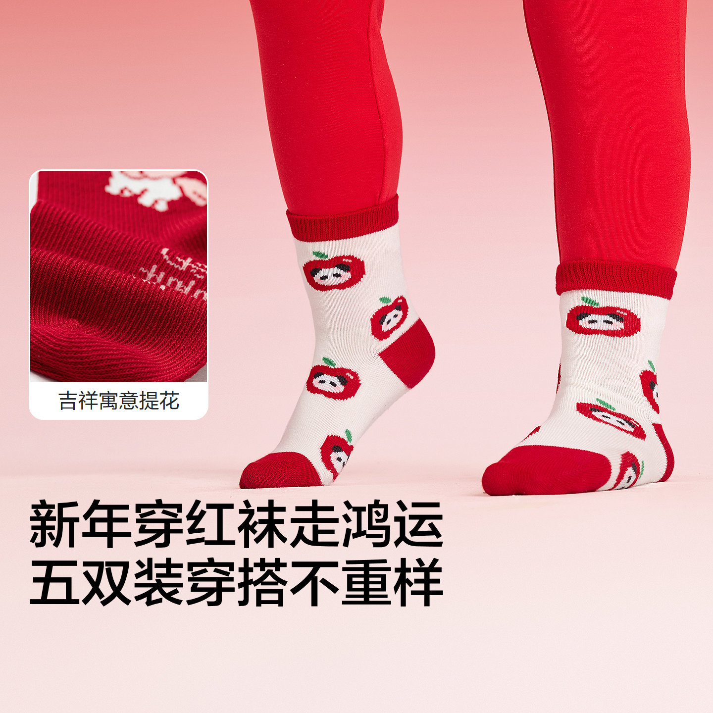 巴拉巴拉儿童袜子春秋男女童棉袜婴幼儿新年季马年红色中筒五双装