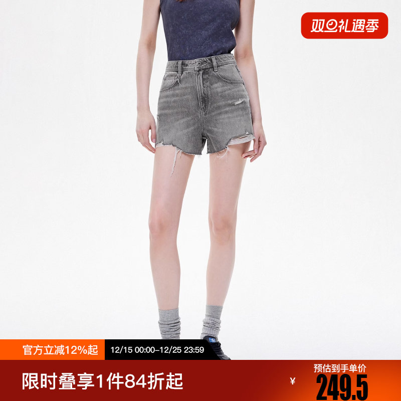 绫致ONLY2025冬新辣妹风不规则破洞毛边设计高腰A字短裤牛仔裤女
