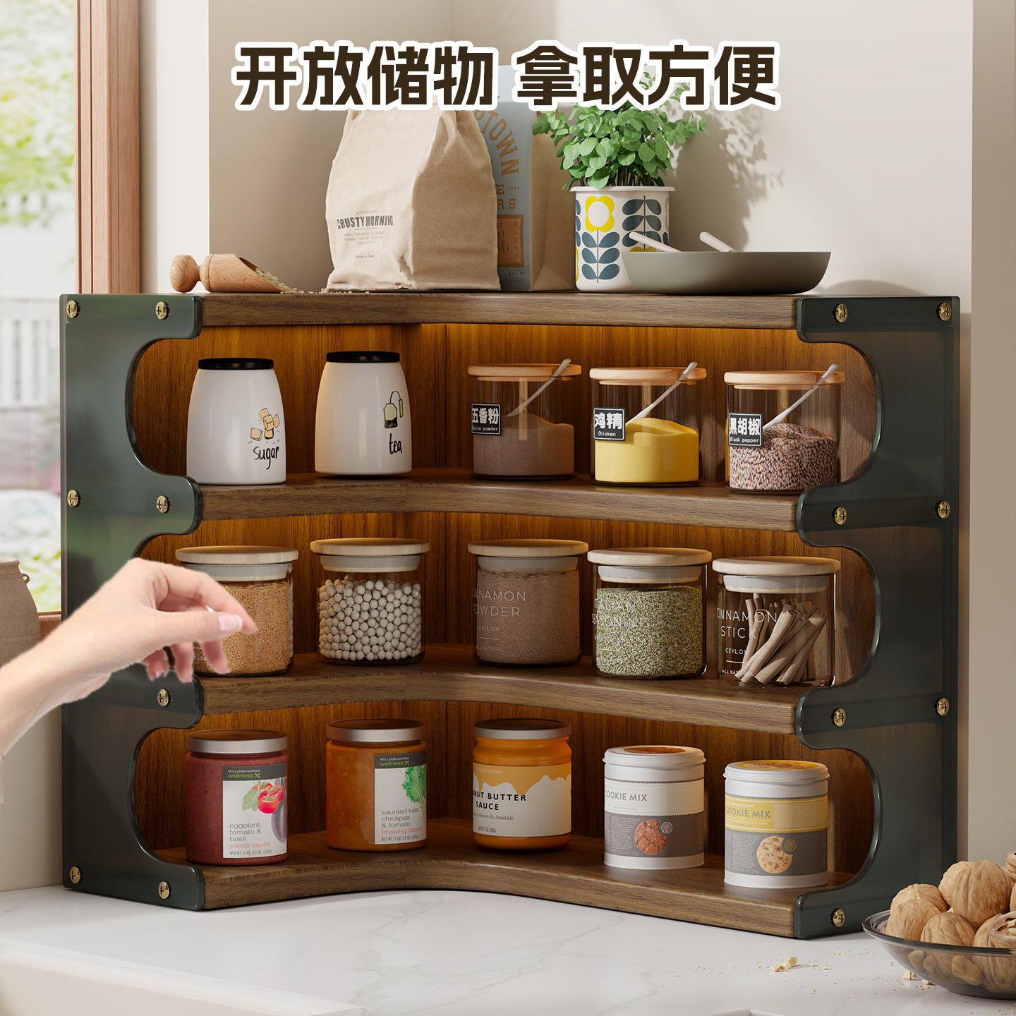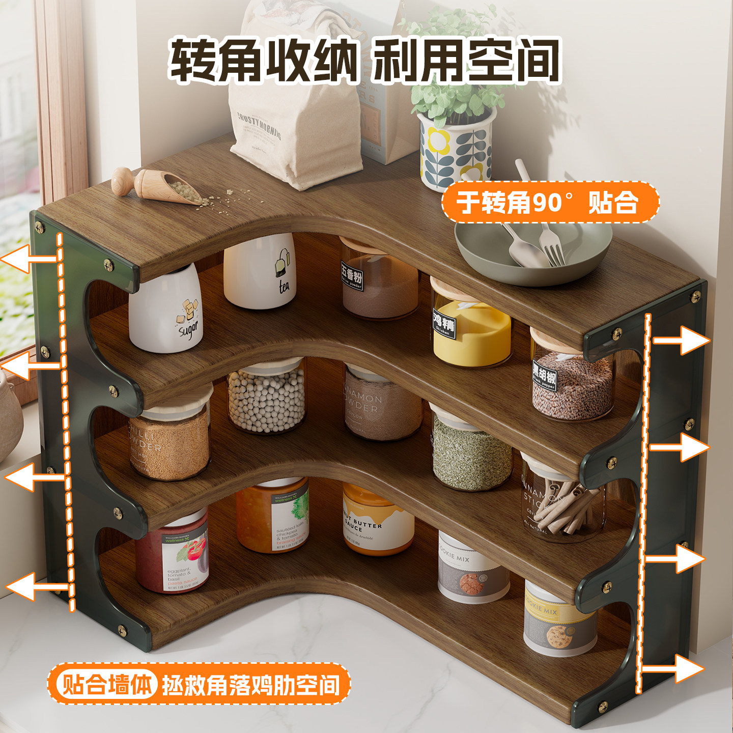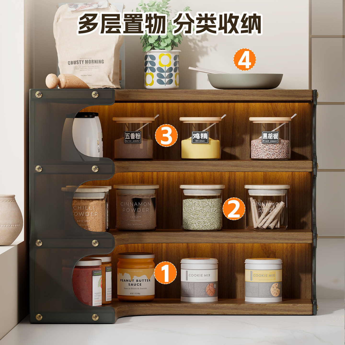 厨房调料置物架多功能调味品罐分格储物架桌面调料袋收纳架台面