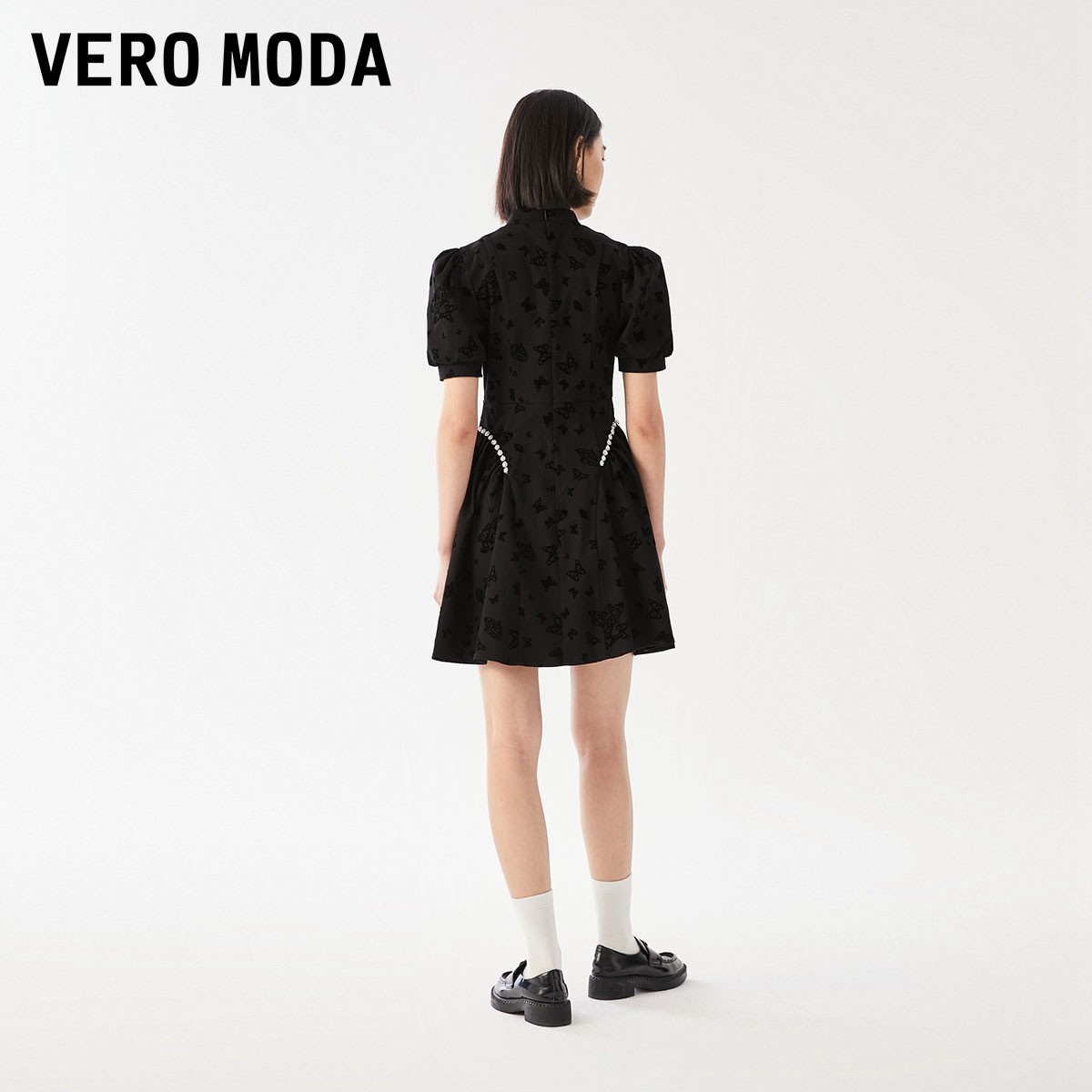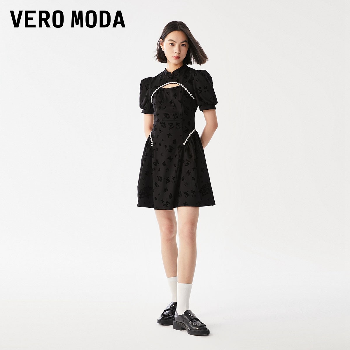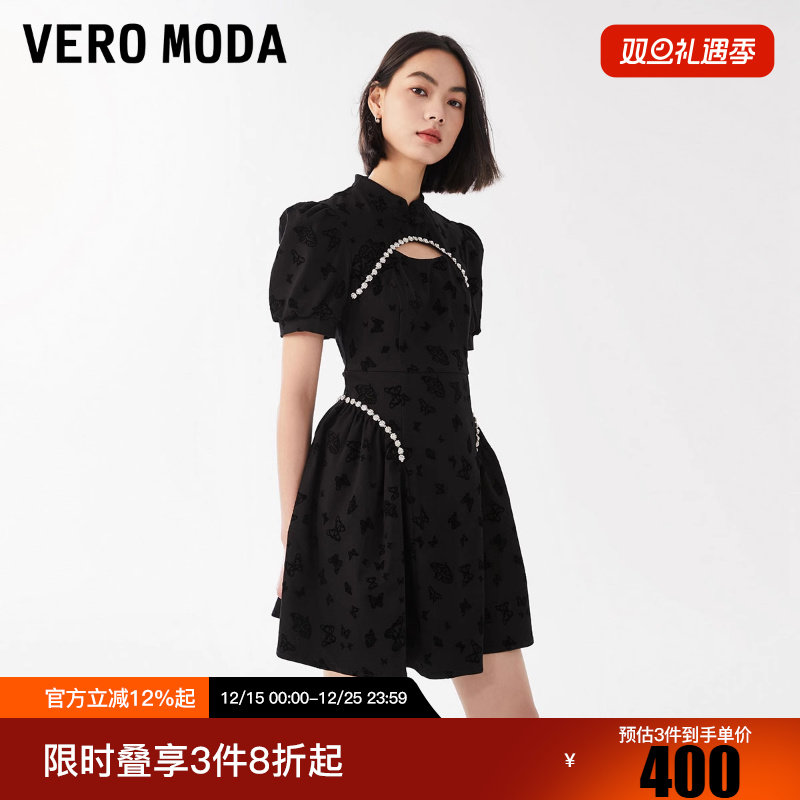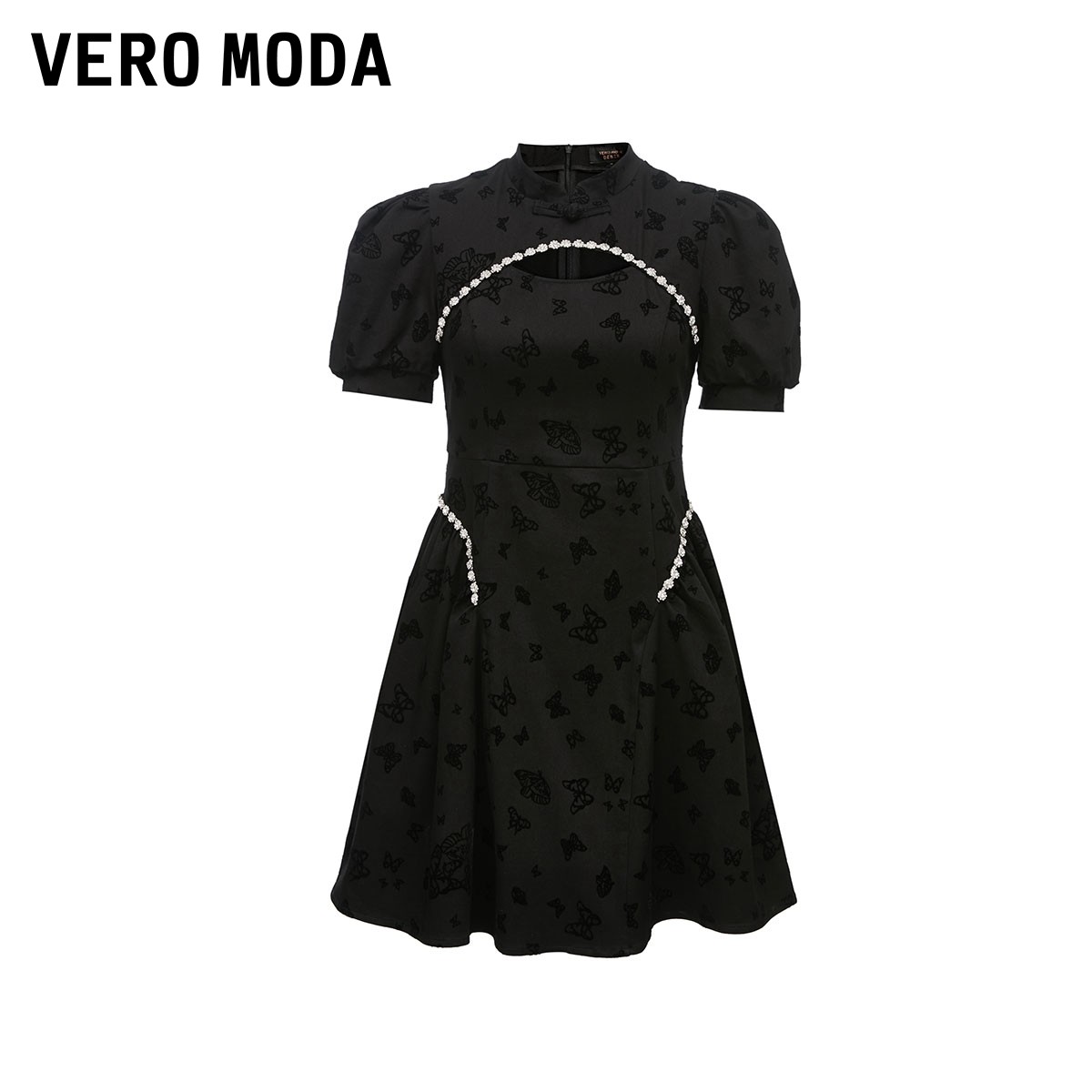 Vero Moda连衣裙2025冬新款气质新中式改良旗袍镂空泡泡袖