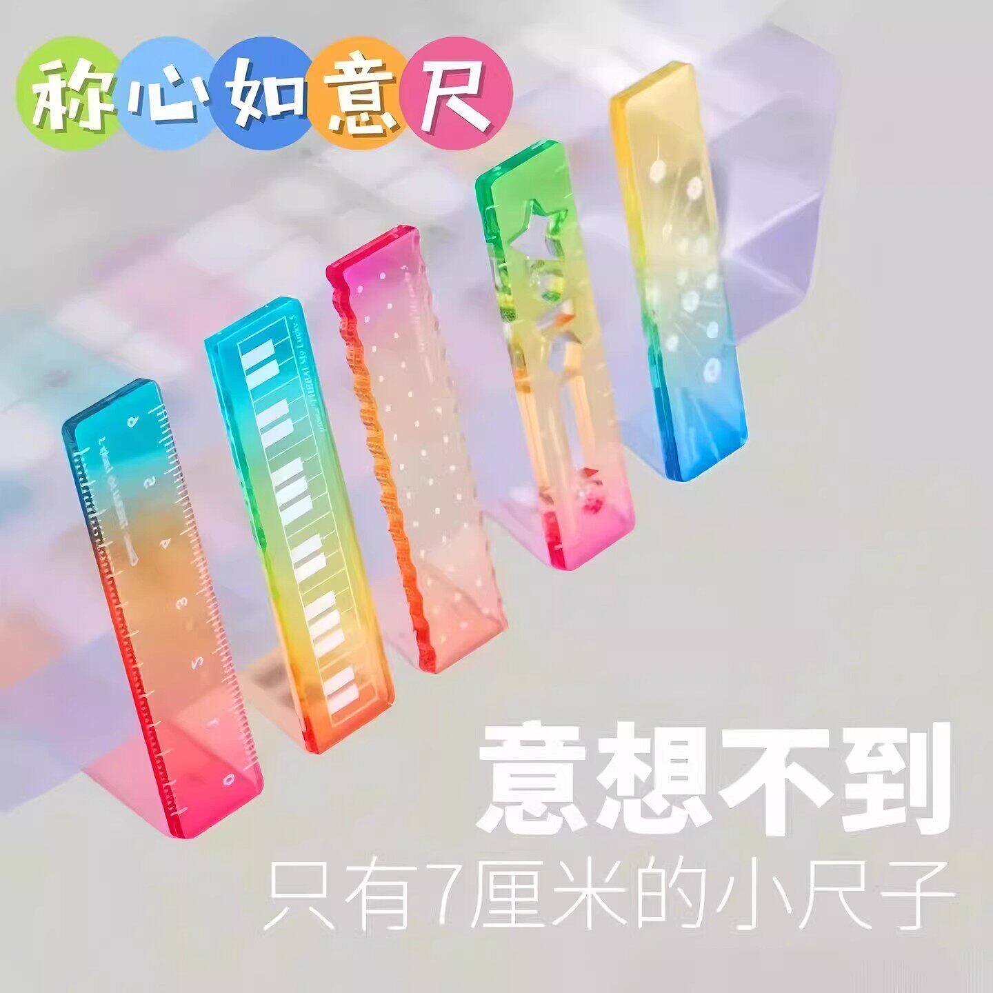 多巴胺掌心尺糖果色高颜值迷你直线波浪线可爱小玩意手掌尺子