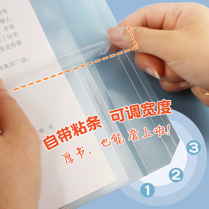 【2件5折】得力纽赛分段式包书皮书套包书膜带定位书皮纸自粘透明磨砂加厚16K小学生一年级防水防滑塑料课本