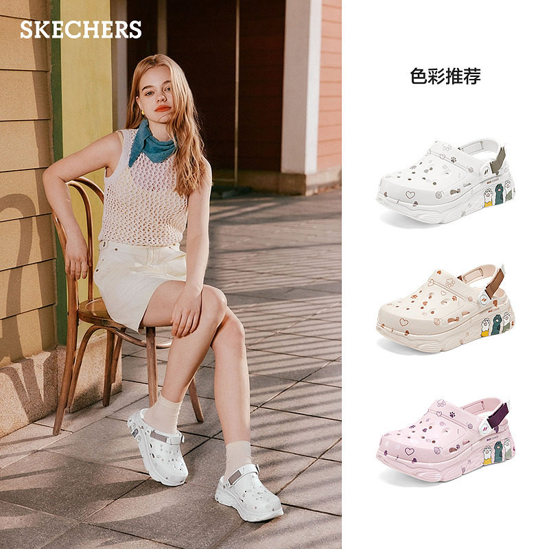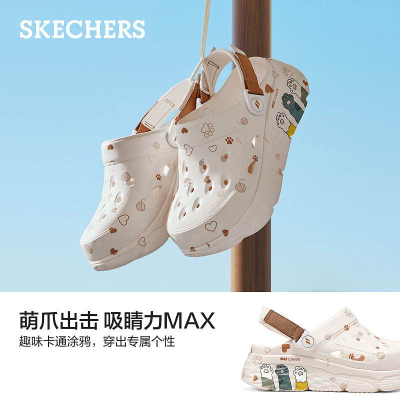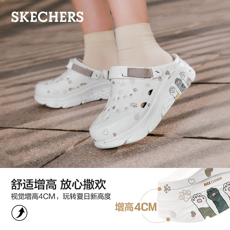斯凯奇猫爪泡泡鞋春季女子厚底洞洞鞋缓震增高凉鞋休闲外穿拖鞋