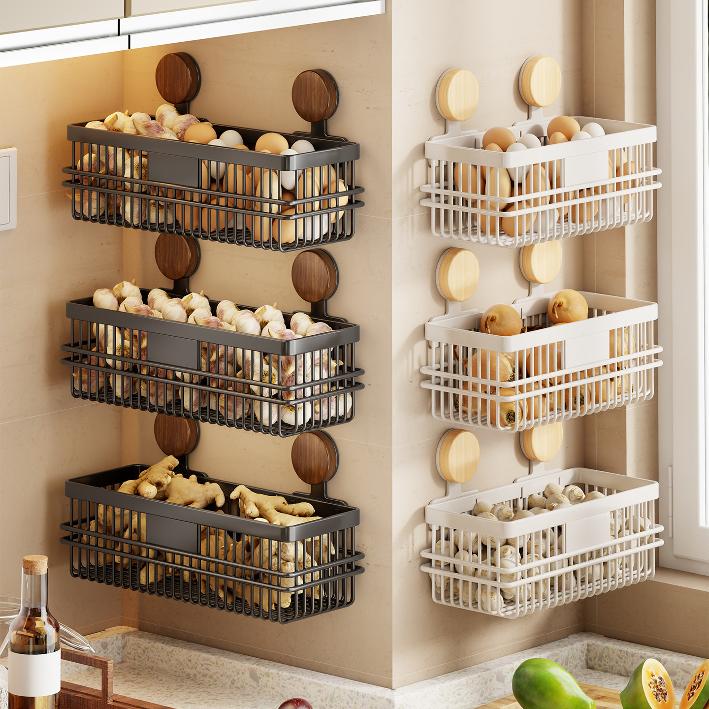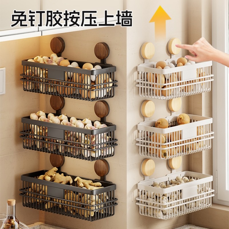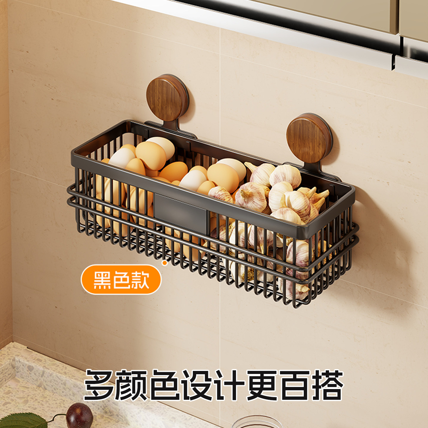 厨房葱姜蒜收纳架蔬菜水果收纳篮多功能吸盘墙上储物挂篮调料神器