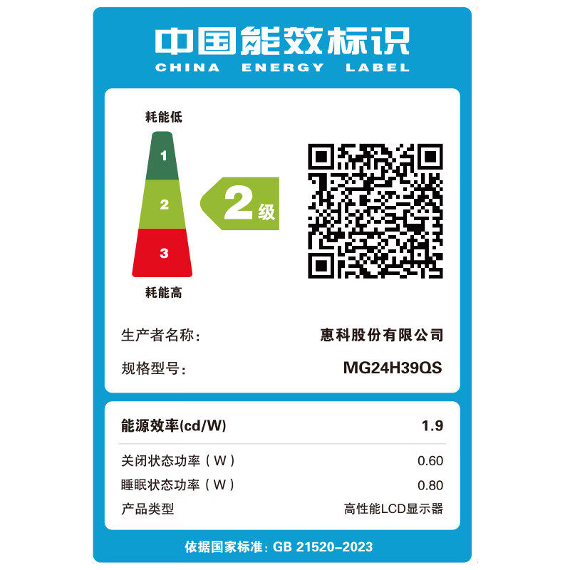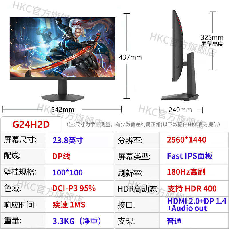 HKC23.8英寸2K高清180Hz高刷FastIPS硬件低蓝光电竞显示器 G24H2D