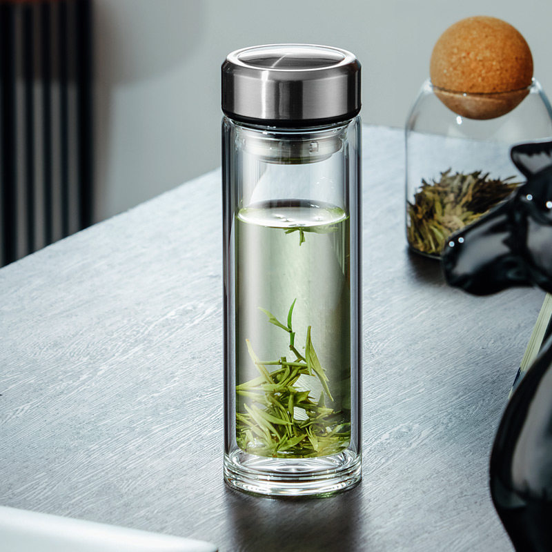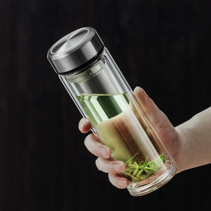 索赫双层玻璃杯水杯男高档家用耐热耐高温车载防爆高硼硅泡茶隔热