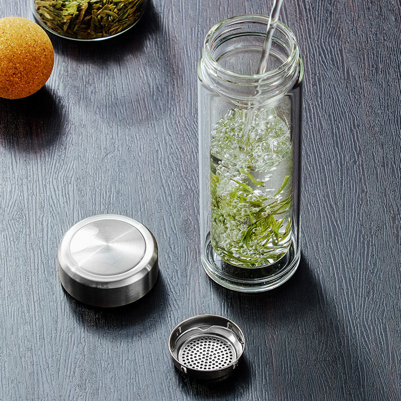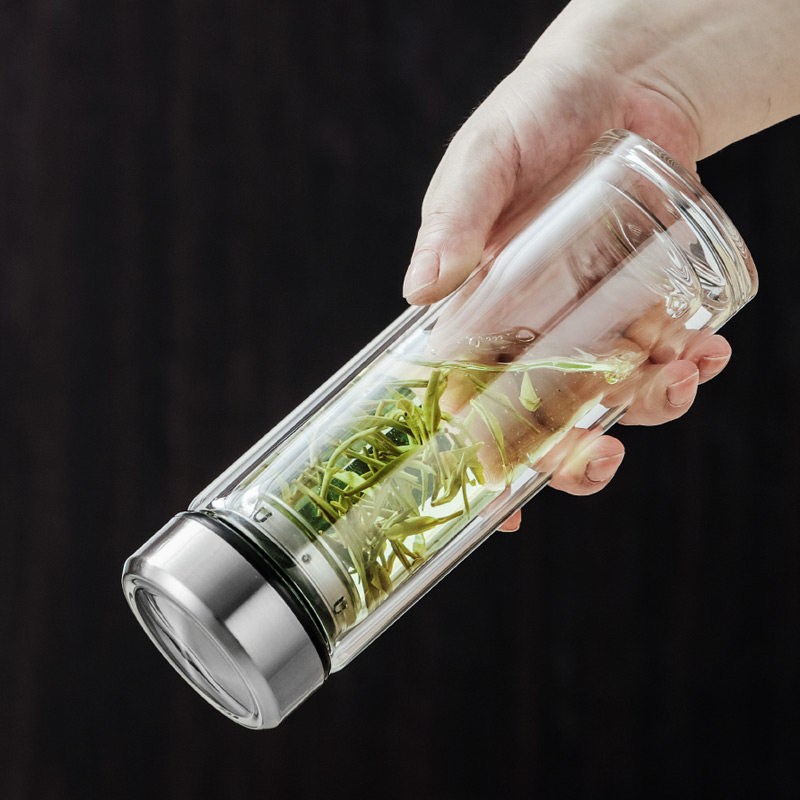 宝选一键开盖水杯车载双层玻璃杯男士泡茶保温速开茶水分离杯茶杯