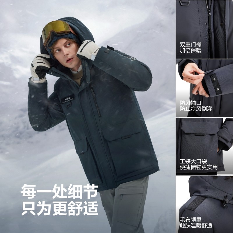 波司登冬季新品户外工装极寒加厚保暖高蓬鹅绒连帽羽绒服男士