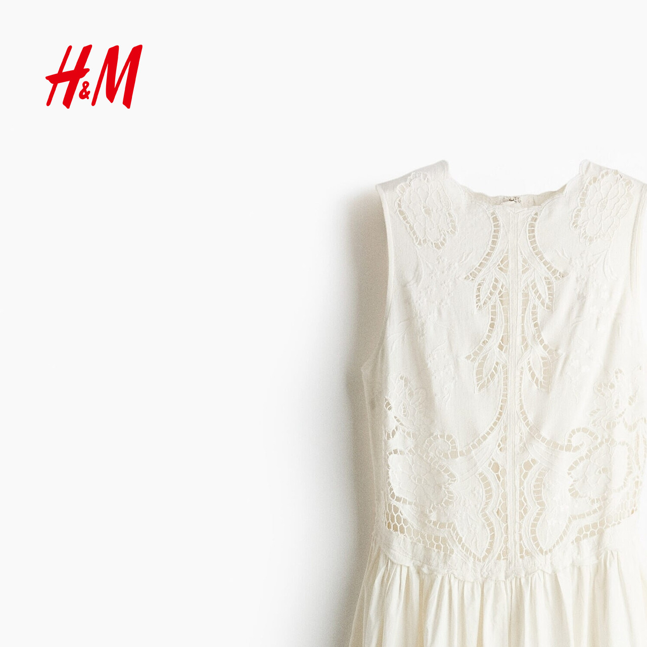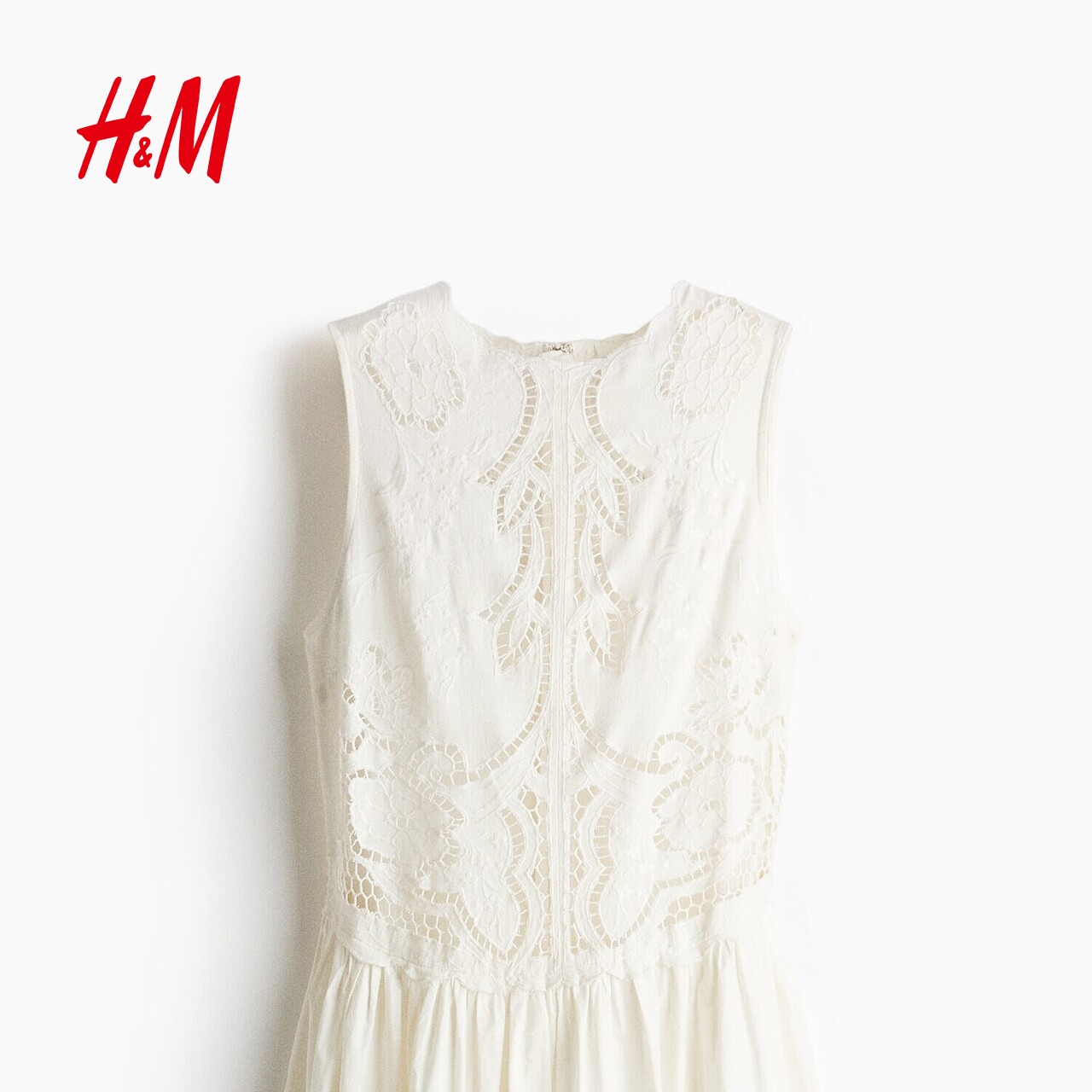 HM2026春季新款女装刺绣亚麻混纺连衣裙1332787