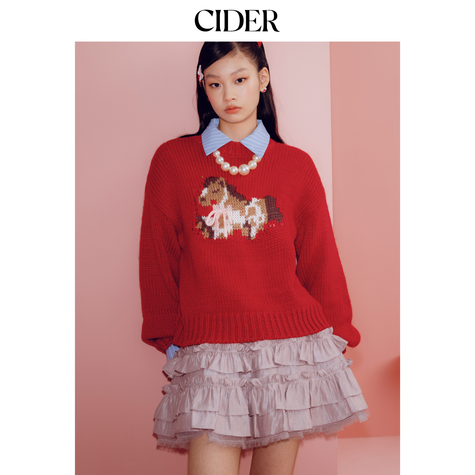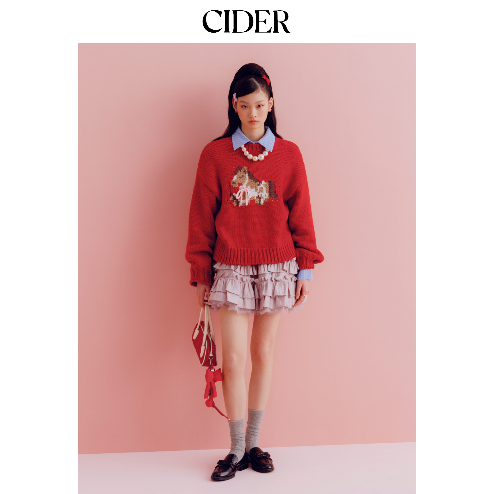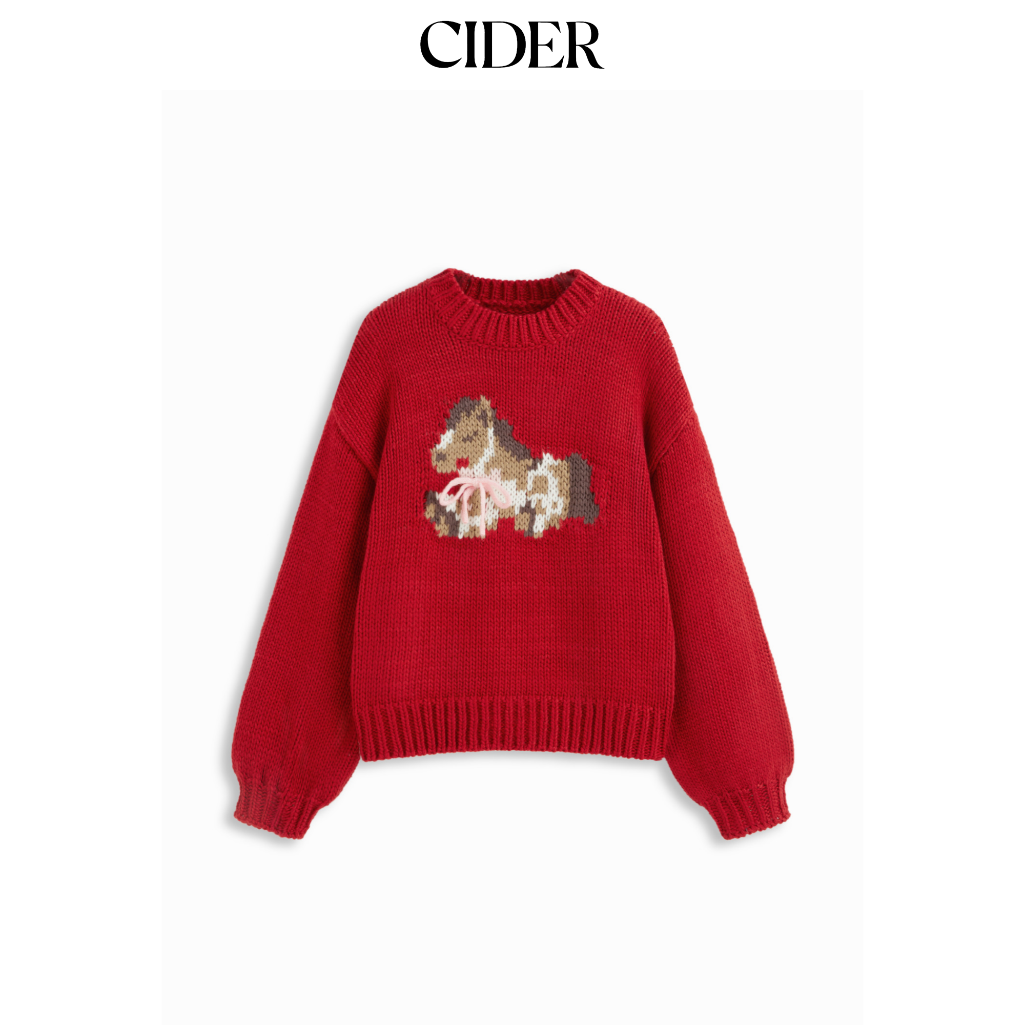 【明星同款】CIDER小马毛衣新年穿搭针织长袖女红色上衣115162127