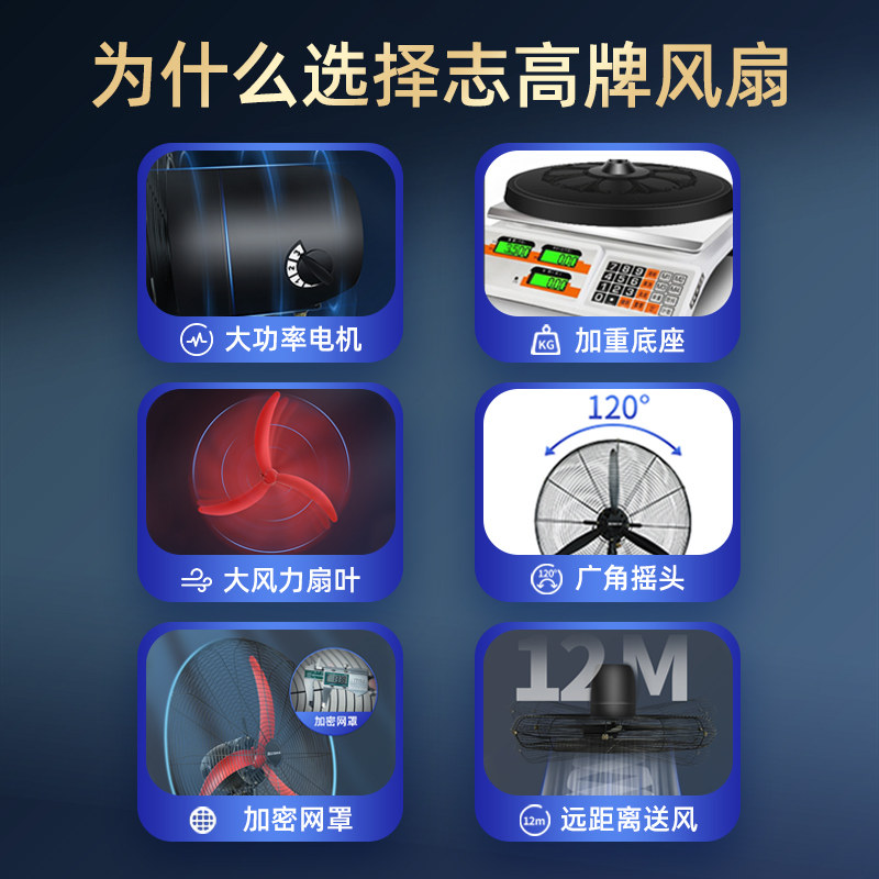 志高牌工业级工业扇摇头风扇壁挂式挂壁扇落地扇牛角扇强力大风力