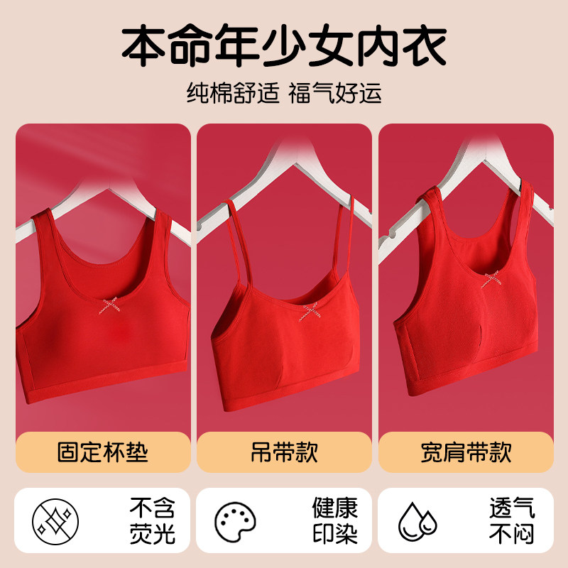 女童内衣本命年套装红色12岁儿童发育期纯棉小背心少女文胸2026马