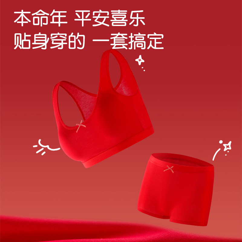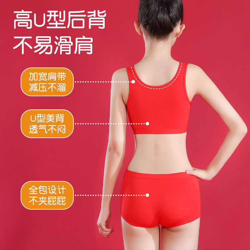 女童本命年少女文胸学生发育期新年蛇红色内衣裤套装12岁纯棉背心