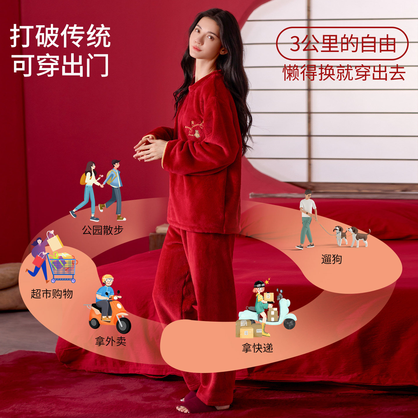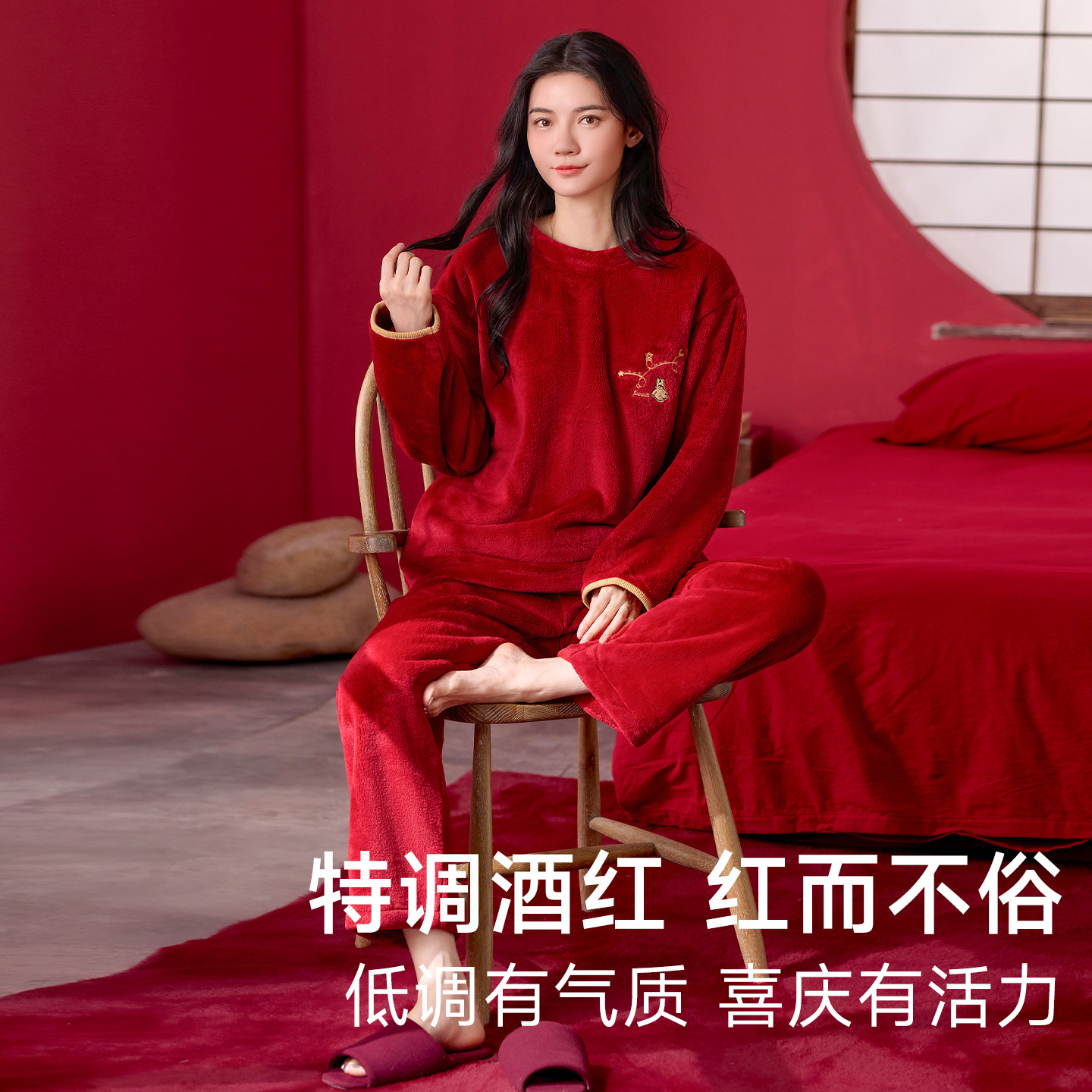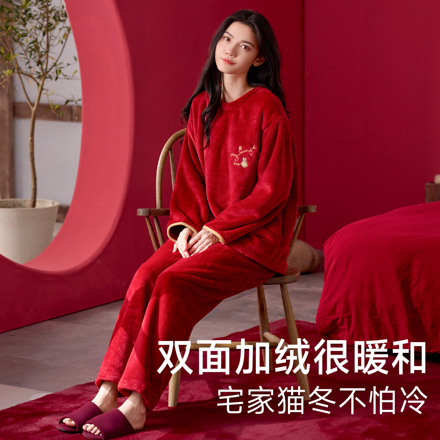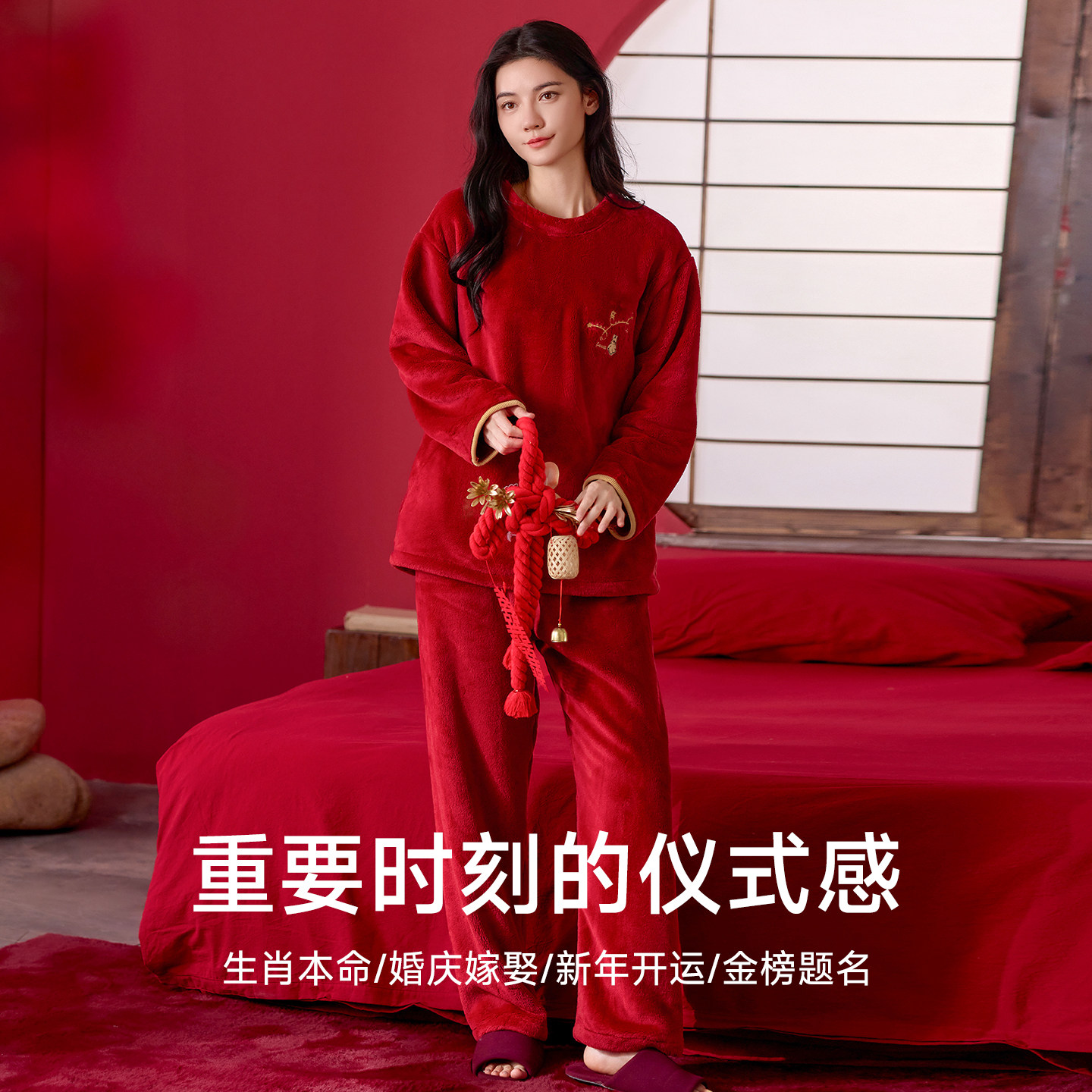 睡衣女可外穿冬2025新款本命年红色加绒加厚喜庆结婚情侣套装
