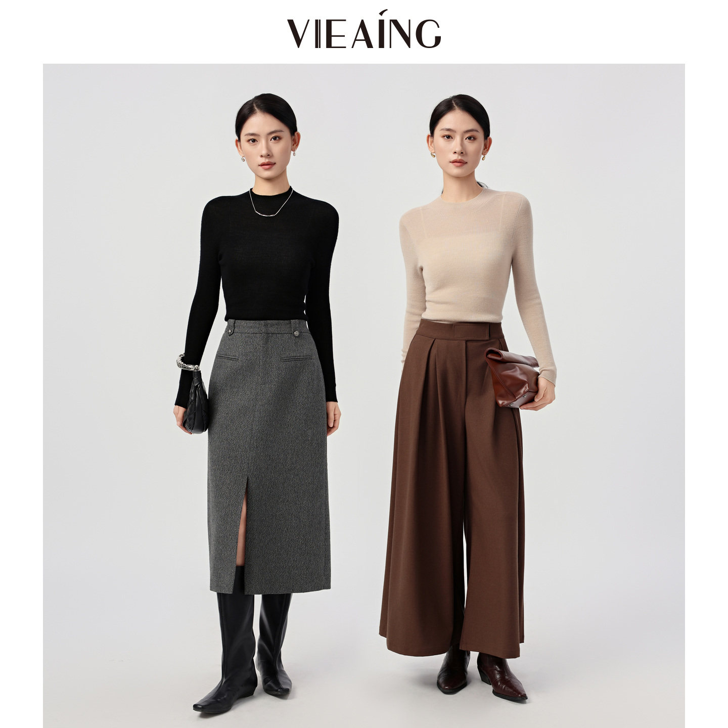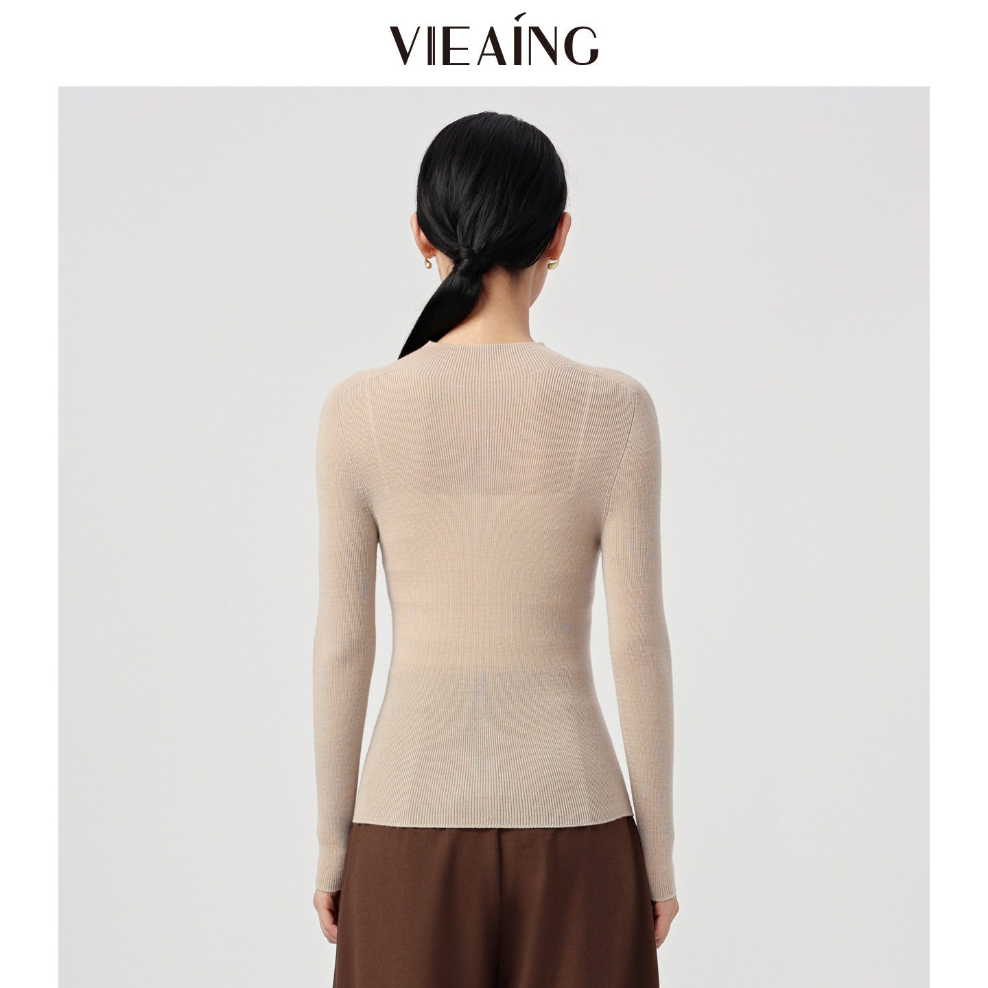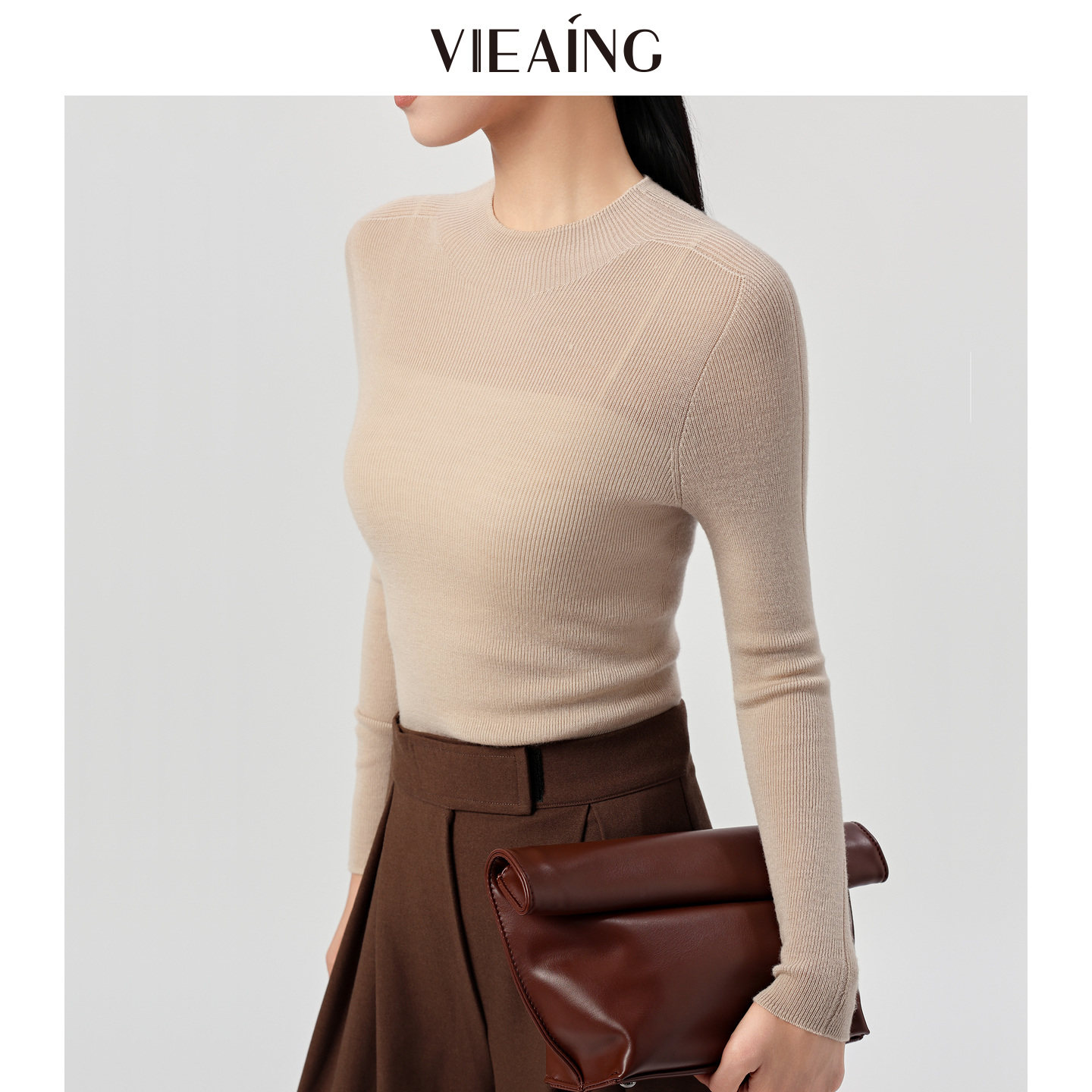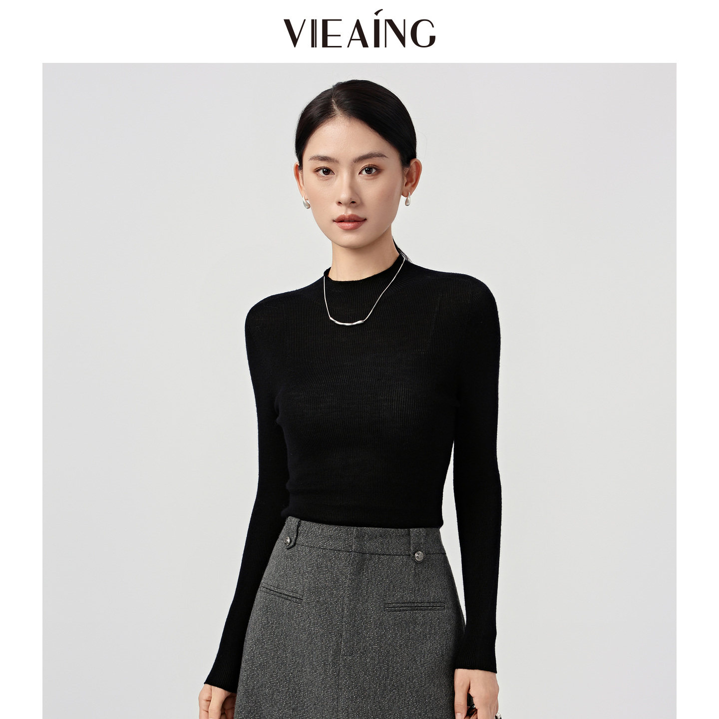 VIEA.ING薇迎可机洗黑色羊毛衫女2025冬新款毛衣半高领打底针织衫