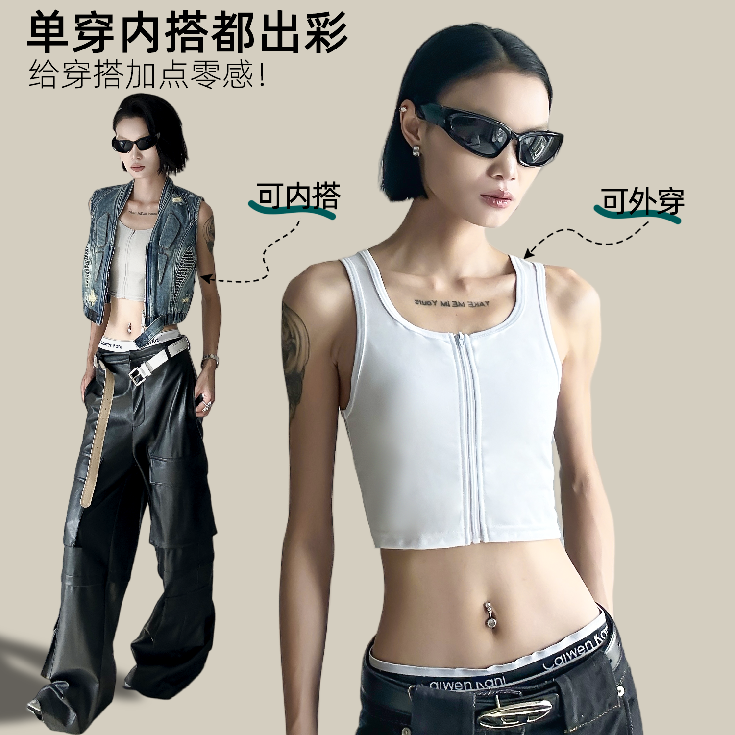 莱特妮丝女士背心带胸垫塑形内衣可外穿显腰细收腹塑身衣无袖上衣