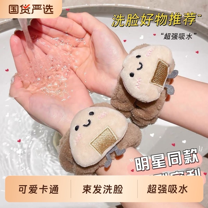 洗脸防水手腕带吸水束发圈手环袖护卡通可爱防湿护腕带洗漱带神器