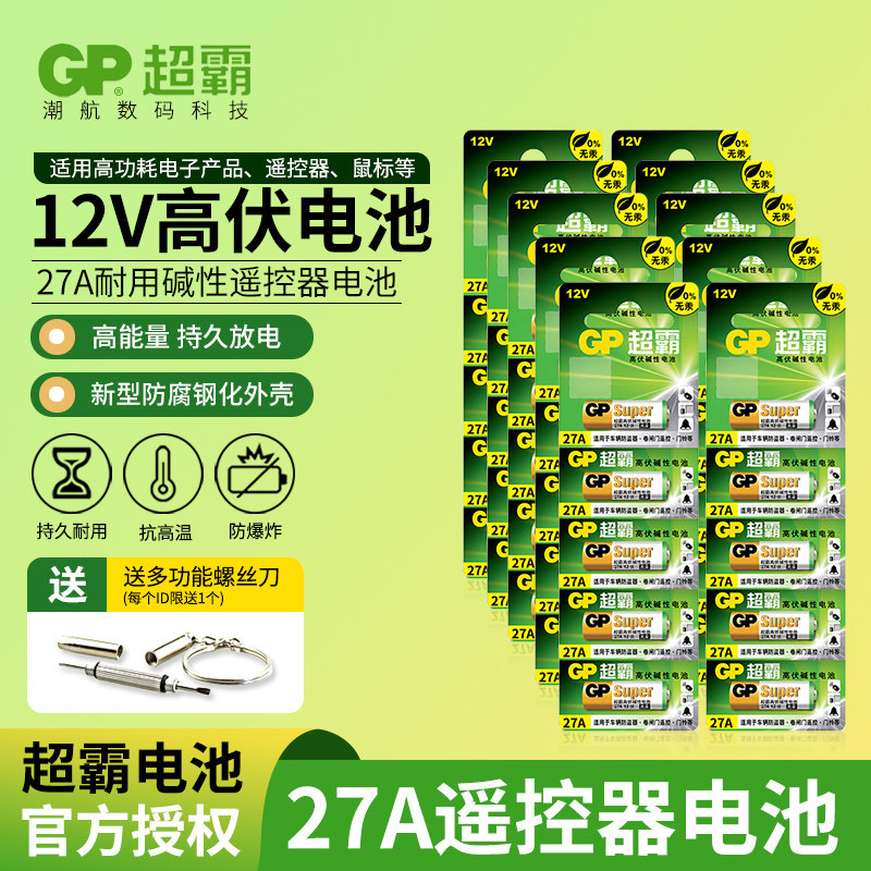 GP超霸GP27A 12v27a电池车库卷帘门遥控器纽扣电池a27s小号27安12伏门铃27a12v吊灯汽摩托车辆报警防盗器l828