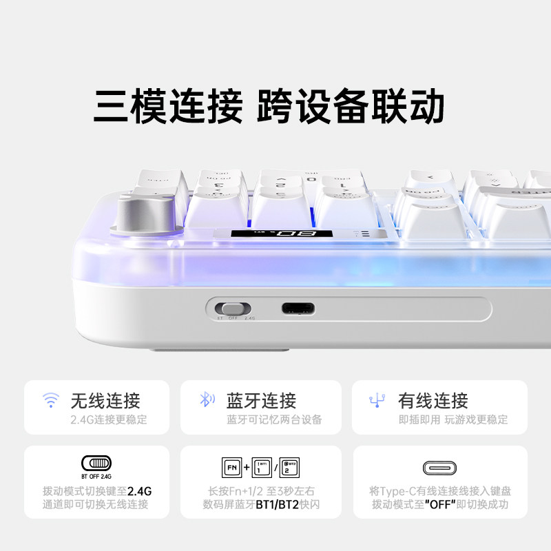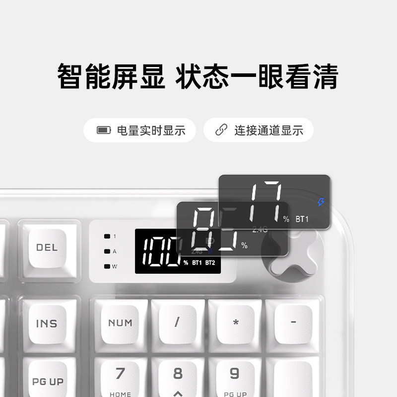 智能屏显 三模连接 静音按键 RGB氛围灯