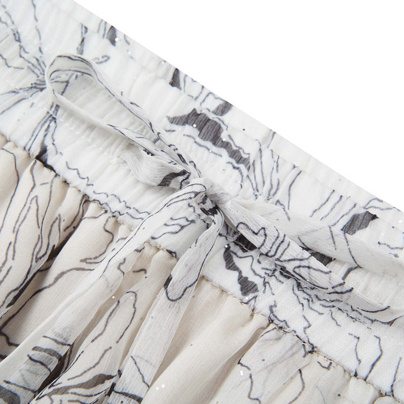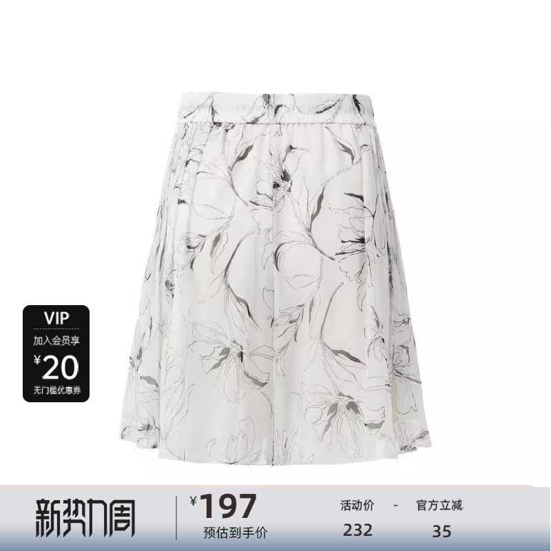 sdeer圣迪奥女装田园风松紧撞色印花压褶A字短裤S24280914