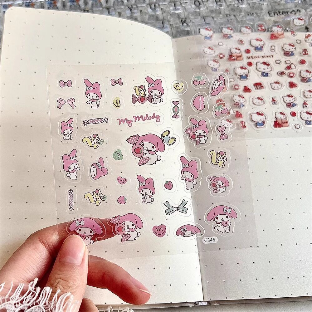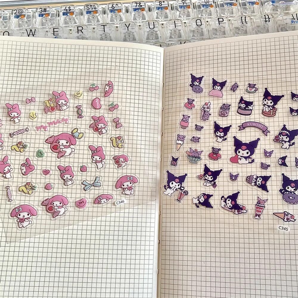 2024新款三丽鸥日系贴纸库洛米贴纸KT猫贴纸流行可爱卡通可diy手账礼盒手机电脑笔记本装饰小图案贴纸防水贴