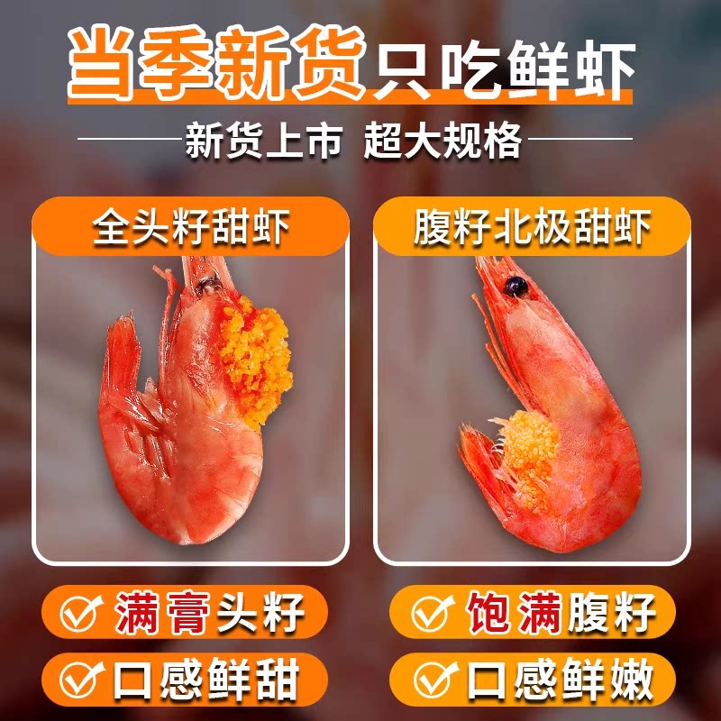 北极甜虾北极熊头籽北极虾刺身冰虾新鲜即食腹籽冻虾元宝虾水产
