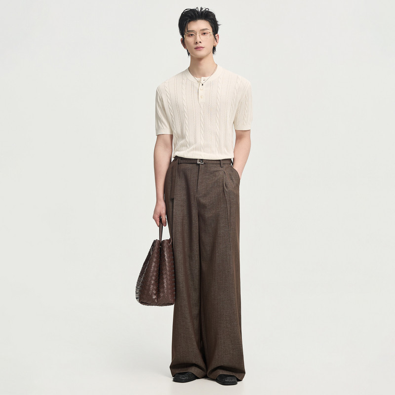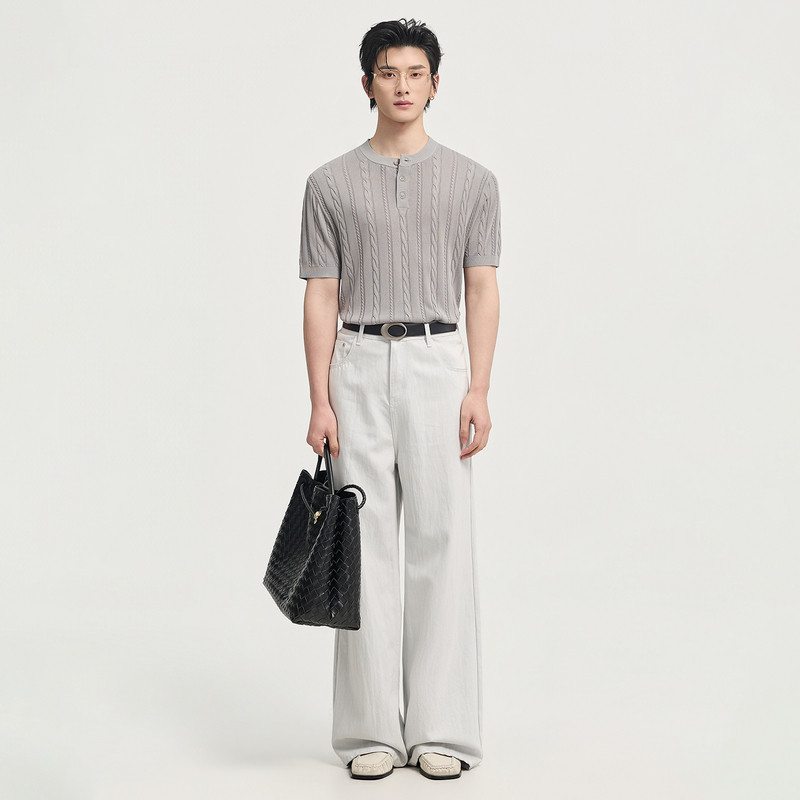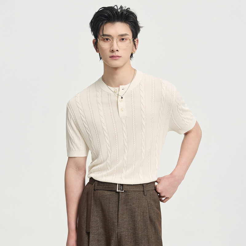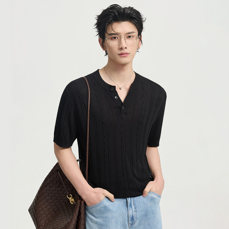 伯爵卓尔26夏季亨利领设计针织短袖T恤男士高级感时尚提花体恤衫