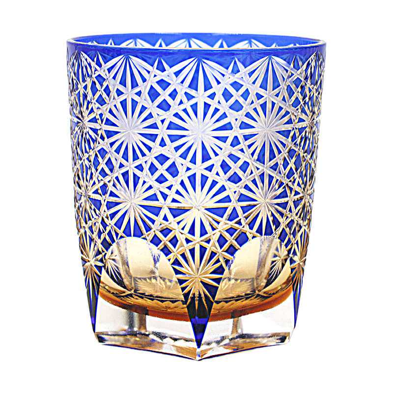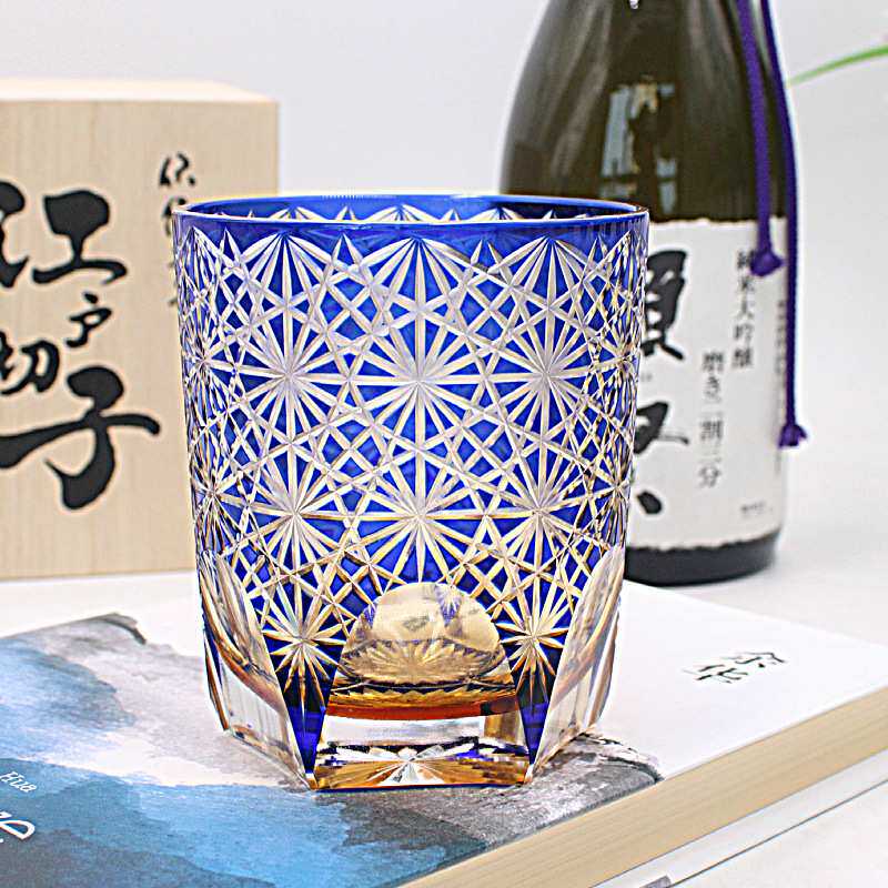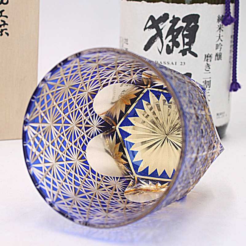 日式江户切子水晶玻璃酒杯威士忌杯手工雕刻工艺家用装饰品蓝雏菊