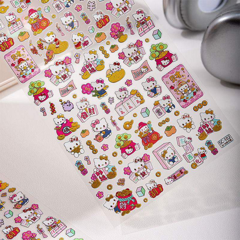 Sky原创新年麻将发财kitty大图贴纸浮雕卡通可爱手机壳相机装饰贴