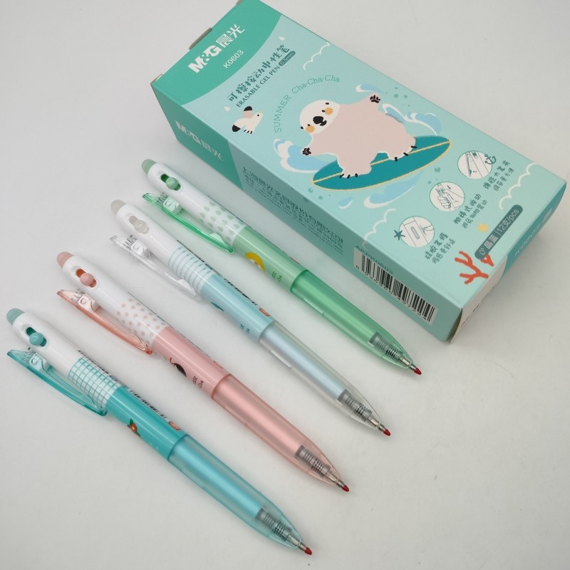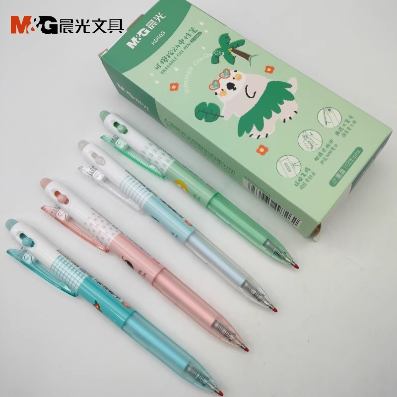 晨光热可擦夏日恰恰子弹头中性笔AKPK0603晶蓝 0.5按动摩易擦水笔