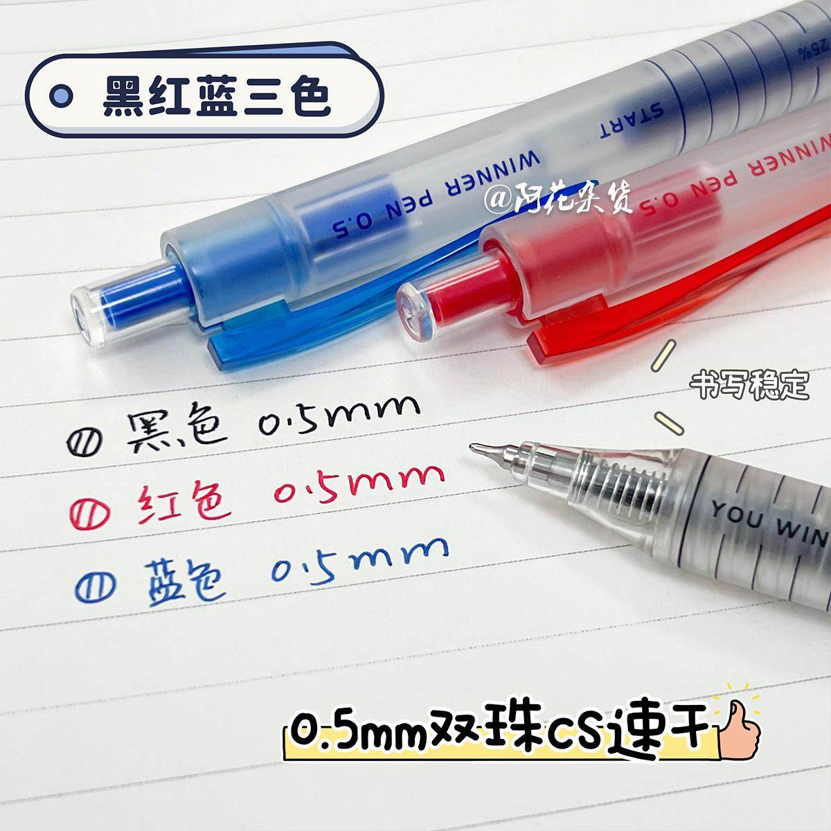 晴耕雨读刷题笔专用高颜值速干按动中性笔ins黑笔圆珠笔ST笔学生用考试笔顺滑0.5笔芯黑色水性签字笔水笔碳素